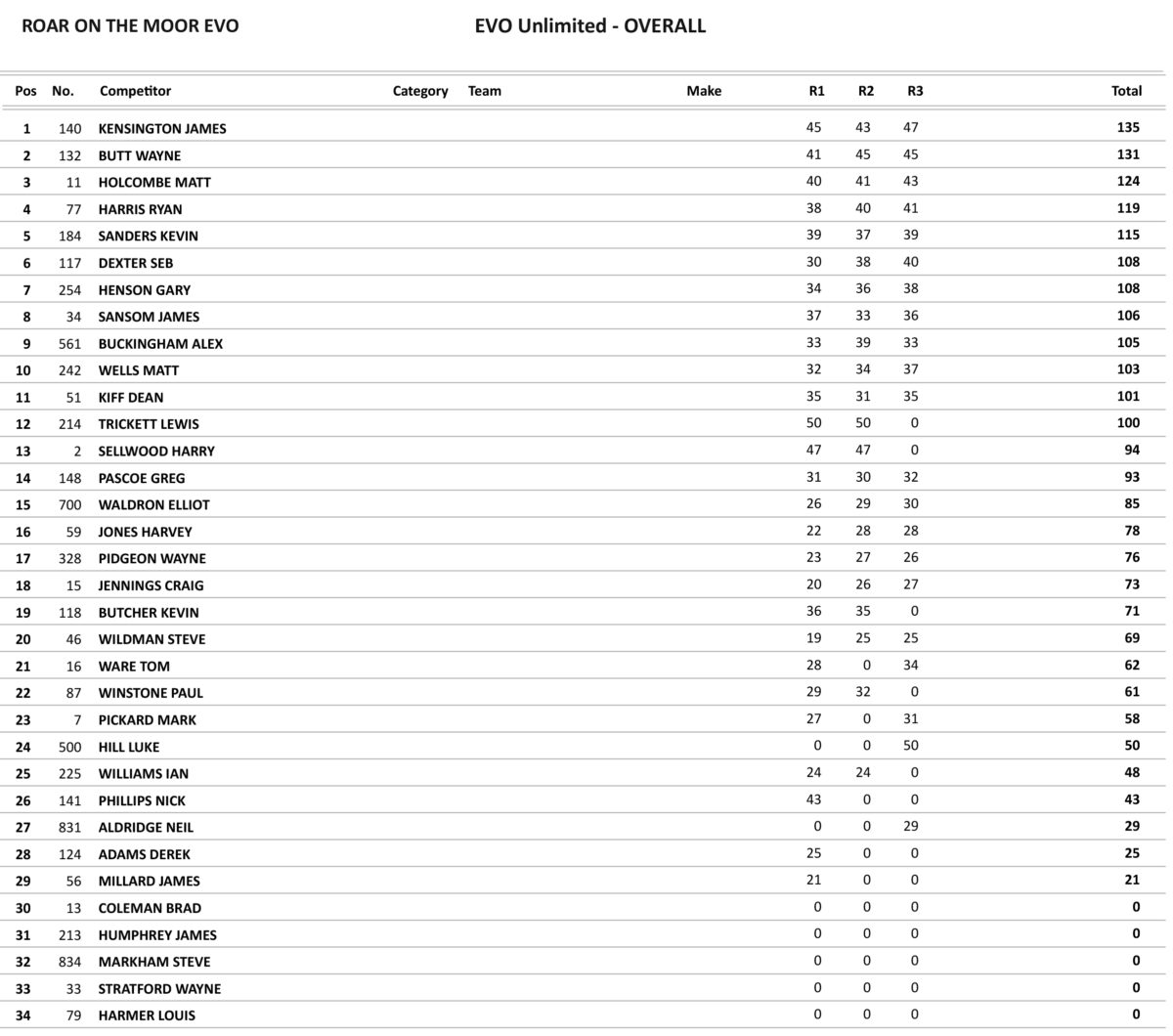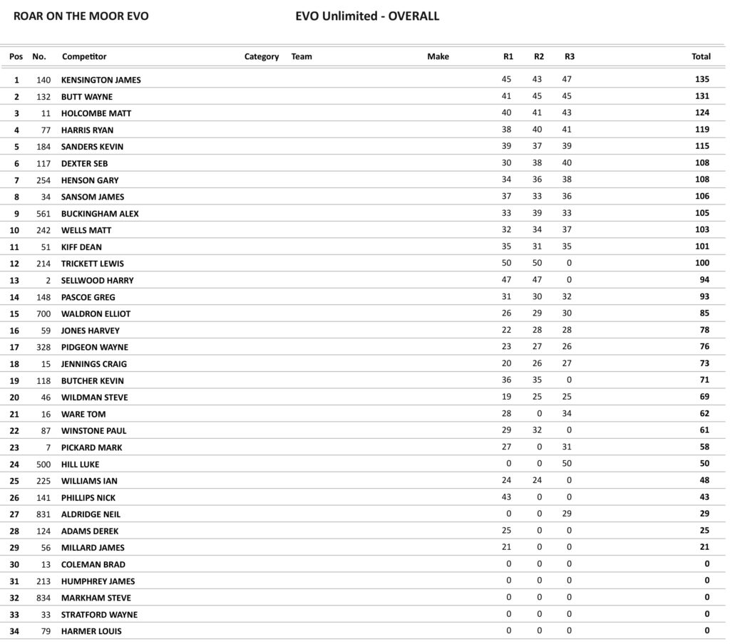 The unlimited Evo class has proved to be extremely popular of late and with it has produced some top-quality racing. Lewis Trickett had opted to race in two classes at this event and he proved he was to be the one to beat in the opening race winning by a fair margin from Harry Selwood who was involved in a good battle with James Kensington with Selwood just taking second. Selwood also took second behind Trickett in the second race with Wayne Butt this time getting the better of Kensington in the closing stages taking third. The last moto saw Luke Hill on the line for this one who was soon leading, but not such a good start for Trickett who had it all to do in this one and he was doing that straight away on lap 2 lapping some four seconds quicker than Hill at the front, but Trickett’s race soon ended as his throttle stuck open and headed towards the bog forcing Trickett to dismount. Hill was soon caught by Kensington in the closing stages, but it was to no avail as Hill took the Chequered flag ahead of Kensington who with it had been consistent in all three races and took the overall.
