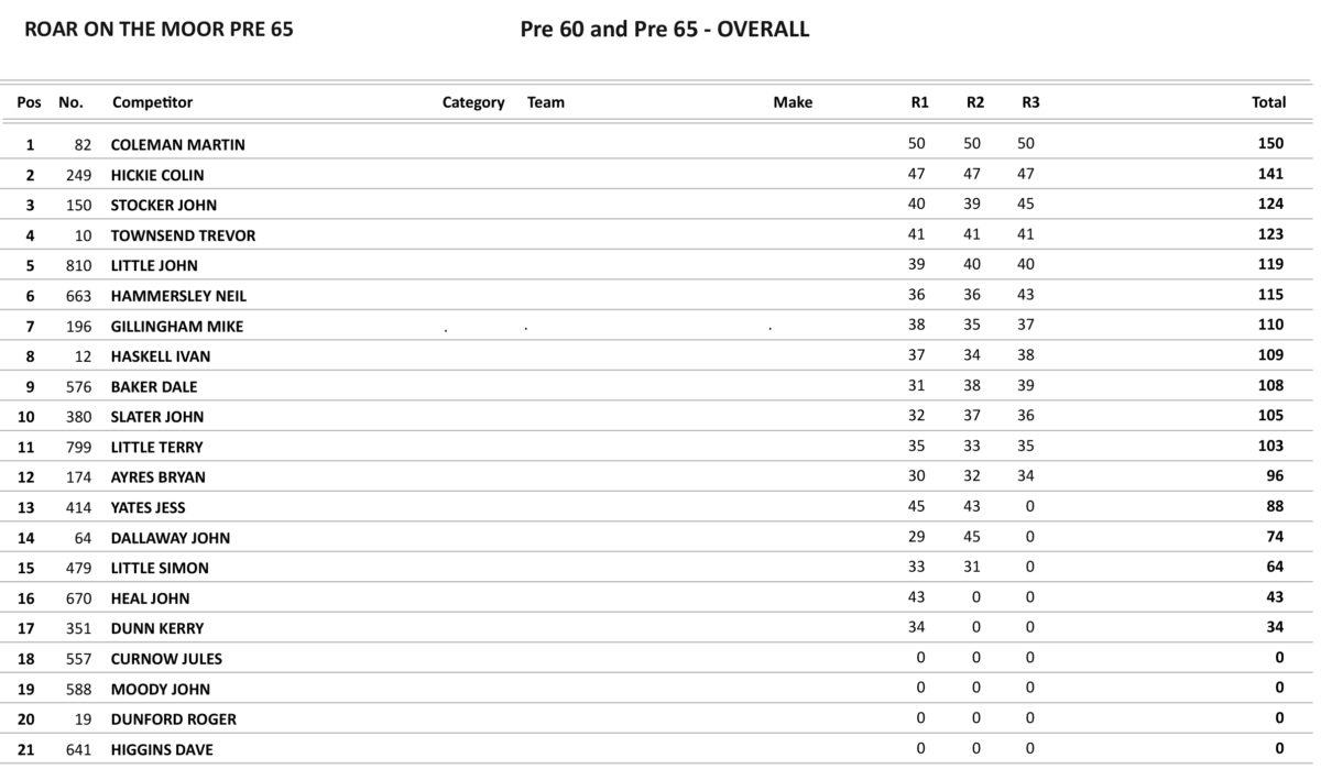 In the Pre 74 class, there was some good racing as it was Tim Dallaway who led the opening race for the first couple of laps on his 500 BSA before a mistake cost him and put an end to his first race and it was Mark Gleadhill on the 360 2-Stroke CZ who was to take the win from Martin Stephens with Gary Warr on the 250 OSSA taking third. In the second moto, Dallaway was out to make up for his DNF in the opening race and that was exactly what he did winning from Gleadhill with Warr again taking third. The last race and Dallaway was a nonstarter in this one but there was a good tussle at the front between Stephens and Gleadhill with the latter just holding off Stephens for the win with Warr making it a hat-trick of third-place finishes to give him third overall.