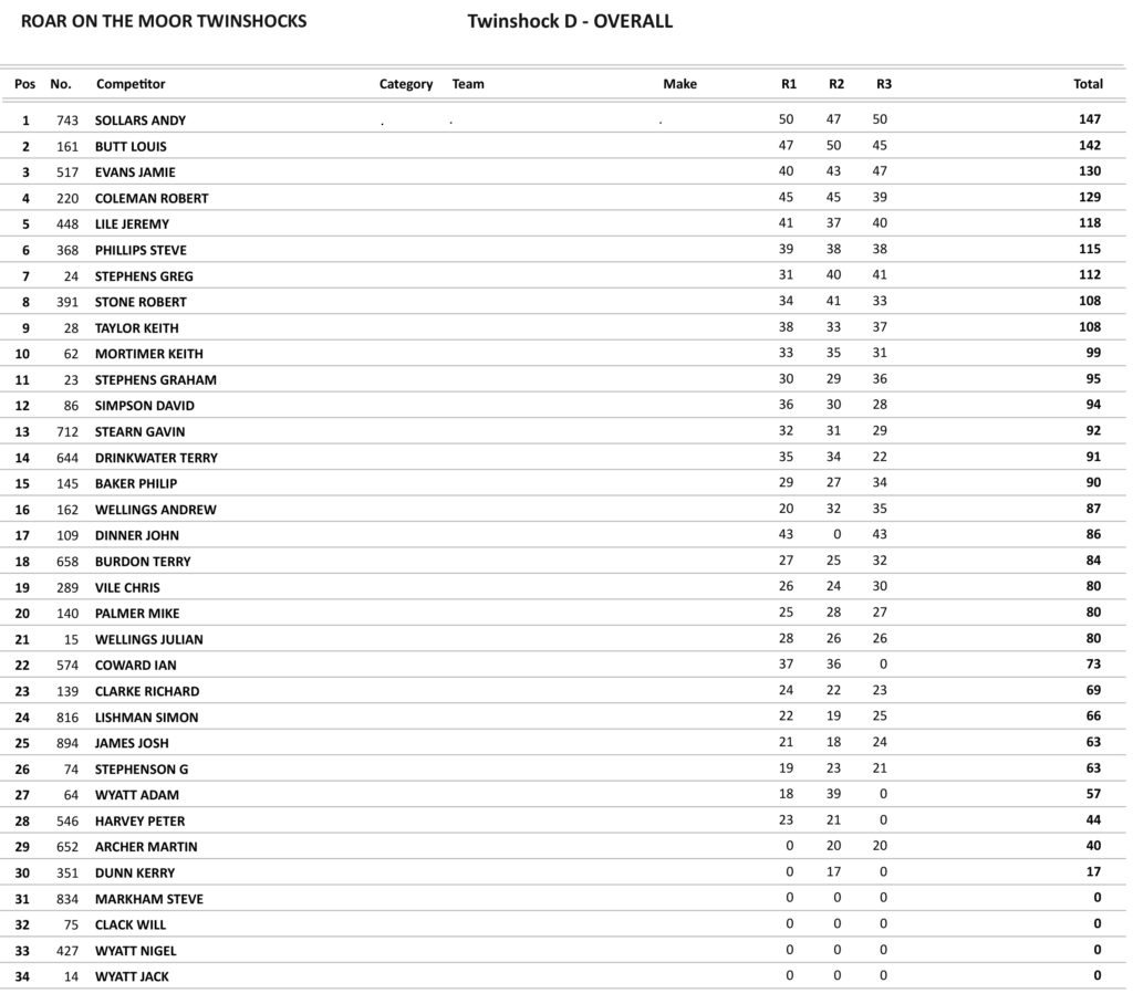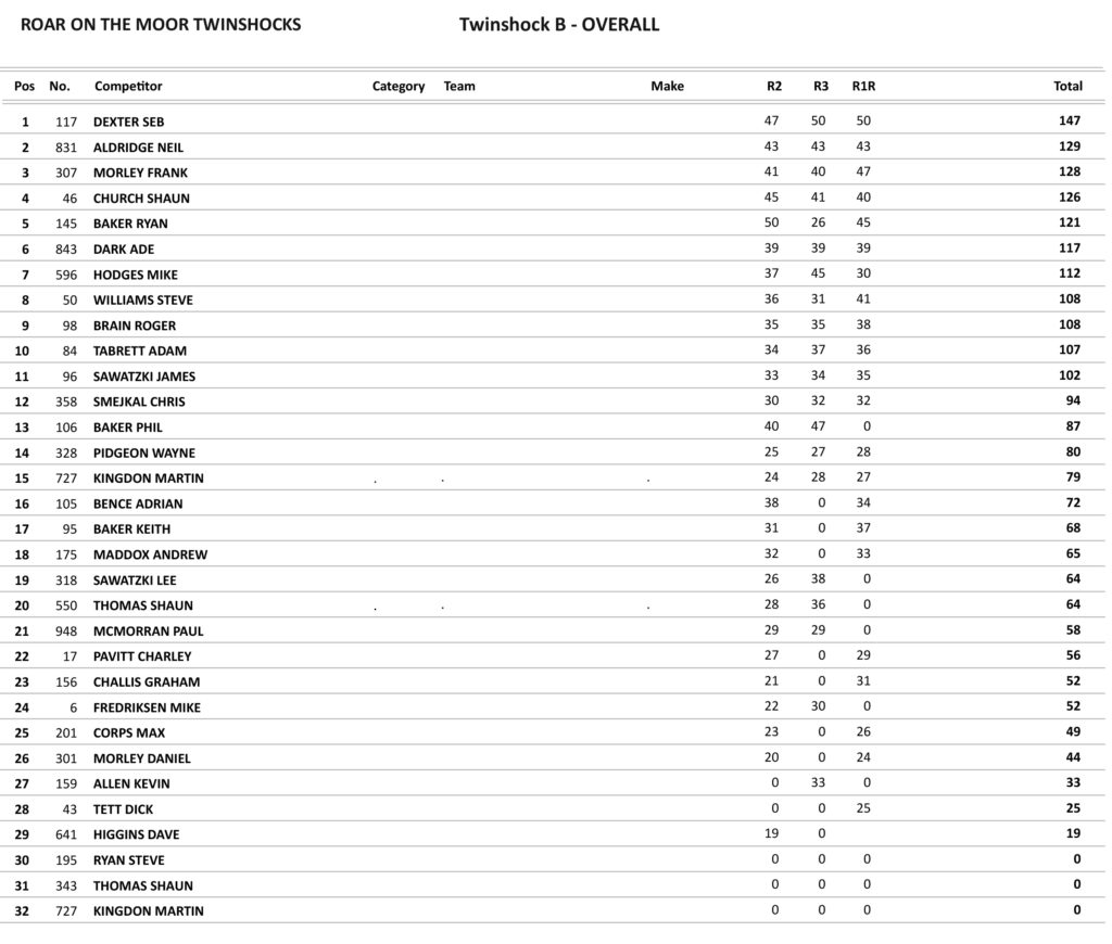 In the Twinshock B class it was Seb Dexter who took the overall winning 2 of the three races and was just denied a clean sweep by Ryan Baker who took the win in the second moto by five-hundredths of a second.
