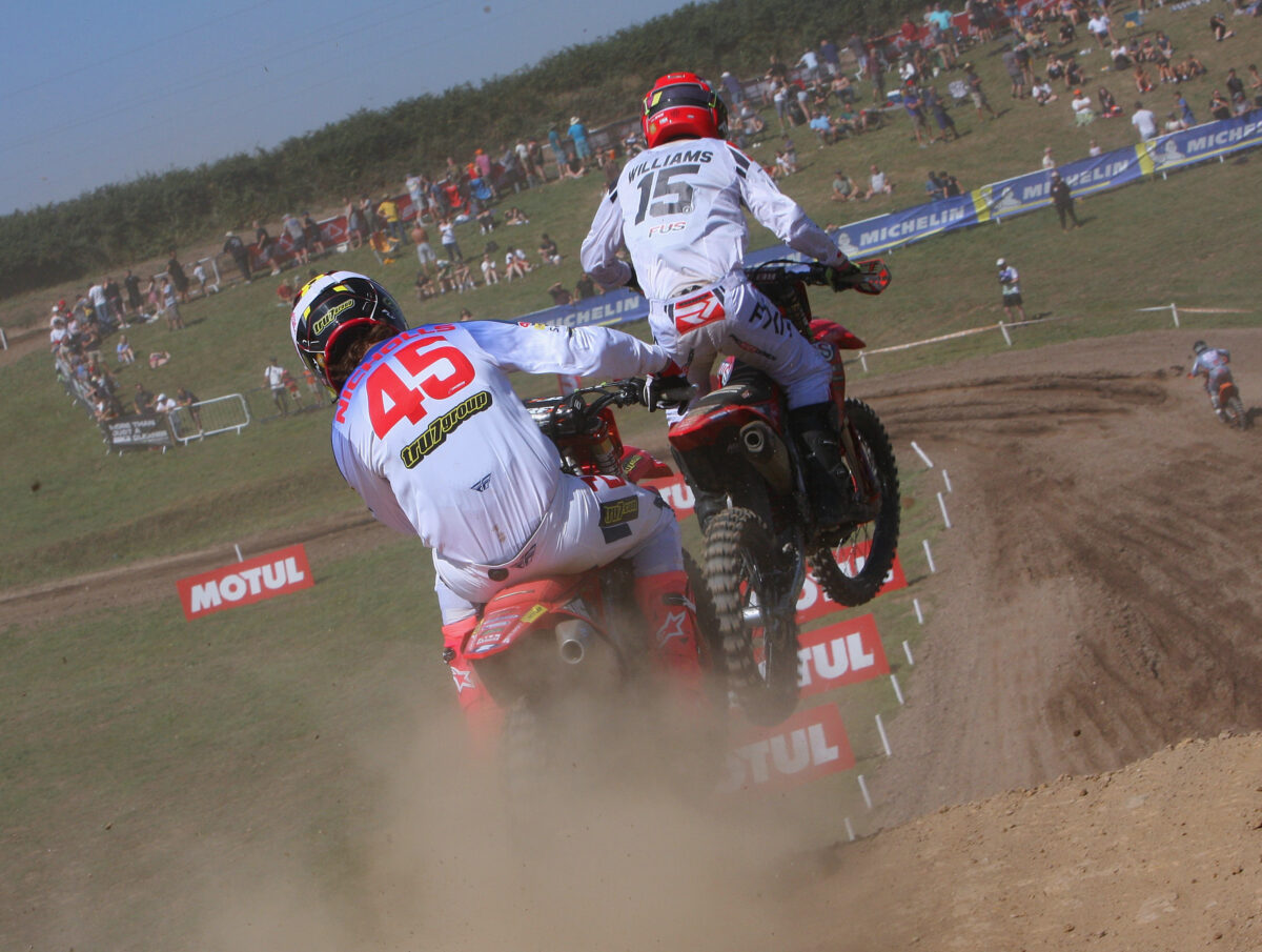 SC Sporthomes Husqvarna’s Charlie Heyman continues to grow in confidence and stature and took third in the first moto ahead of the Dirt Store Triumph of Billy Askew and Calum Mitchell, who had a superb fifth on the Worx Total Triumph machine. New DRT Kawasaki signing Kay Karssemakers would end the moto in sixth just ahead of Gabriel SS24 KTM’s Spanish GP rider Oriol Oliver. Making a welcome return to injury and showing fantastic pace was Joe Brookes, who showed his credentials for future podiums with eighth. Jake Nicholls rolled back the years on the Crendon Tru7 Honda in ninth, and Chambers Racing’s Ollie Colmer was tenth, with the consistent Glenn McCormick on the Chambers Racing bike tenth. Gabriel SS24 KTM’s EMX250 duo Gyan Doensen and Max Werner were 12th and 13th respectively.