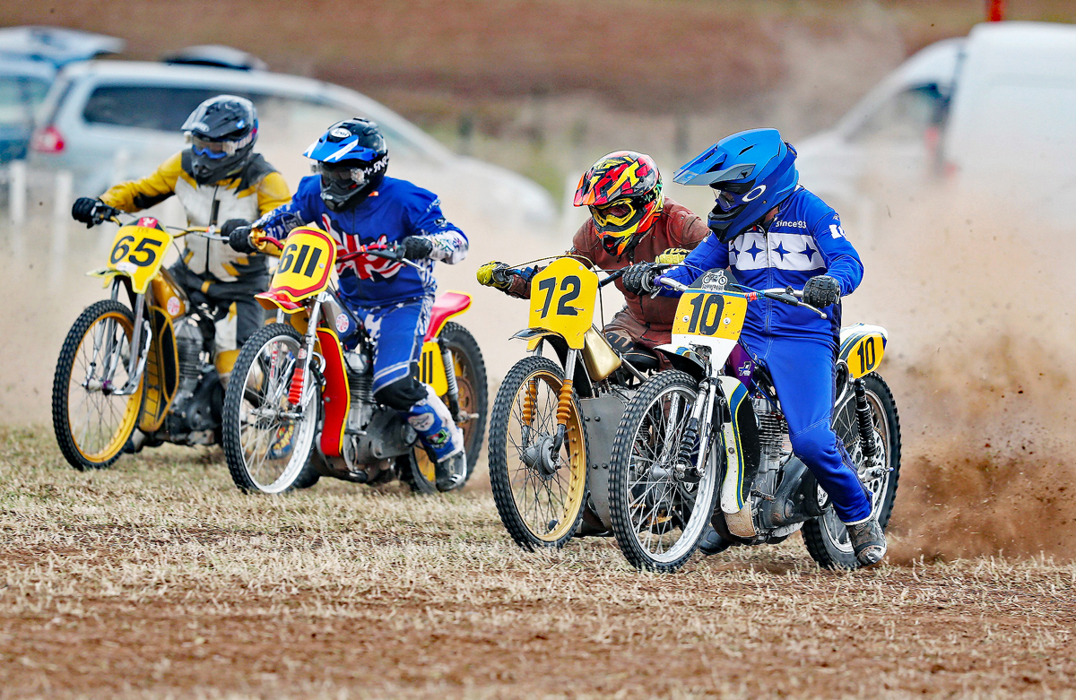 Having taken 2nd in the GT140s, Atkin won all three of his points scoring rides in the Uprights before then leading the final all the way just ahead of John Cox. Earlier in the day, Cox had certainly pushed Atkin hard and also won his last heat. In the final, Glyn Drake battled hard to just about see off Eddie Rouse for 3rd. On what was a busy day of action, the final class was for Pre-75’s which was decided over three points scoring rides and saw victory for Rob Snow with a 4th/3rd/3rd scorecard. John Priest had won heat one before being excluded next time out in a heat which saw victory for Phil Kynman. John Webb took the last Pre-75 victory, so that meant it was a podium of Snow, Priest and Weeks.