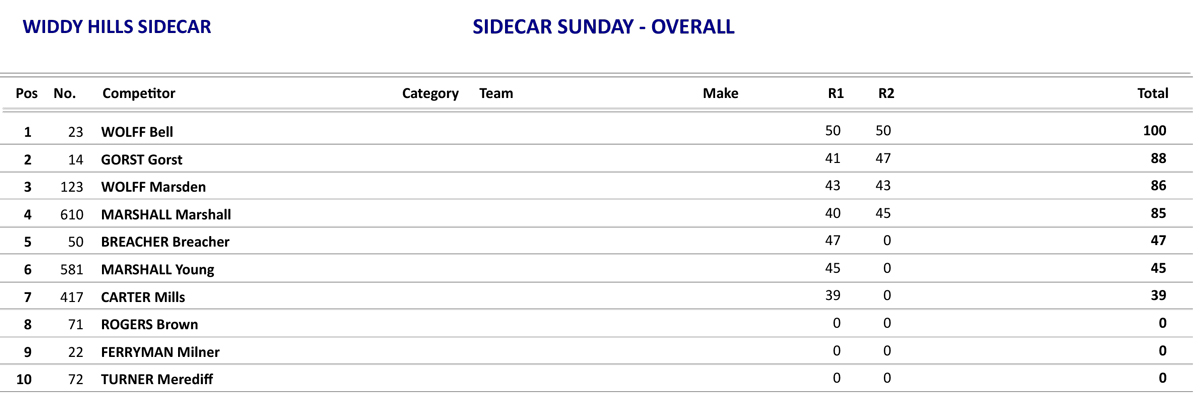 Sidecars were in action on the Sunday, and they were to struggle with the challenging conditions, but they gave there all and in the opening race it was the 880 Yamaha Wasp of George Wolff with David Bell in the chair who were triumphant from Andy & Tim Breacher on their 840 Yamaha Wasp and third was Kristian Marshall with Paul Young in the Chair also on an 840 Yamaha Wasp. In the second race, there were a few nonstarters, including the Breachers. Kristian Marshall came to the line but withdrew when he noticed oil leaking from the crankcase. Race one winners Wolff and Bell led from the off and were soon to power away at the front, and were to go on untroubled and took their second race win by some twenty-one seconds, which gave them the overall. Second overall was to go to Nick and Harley Gorst, with Gary Wolff, with Vicki Marsden in the Chair, taking third overall.