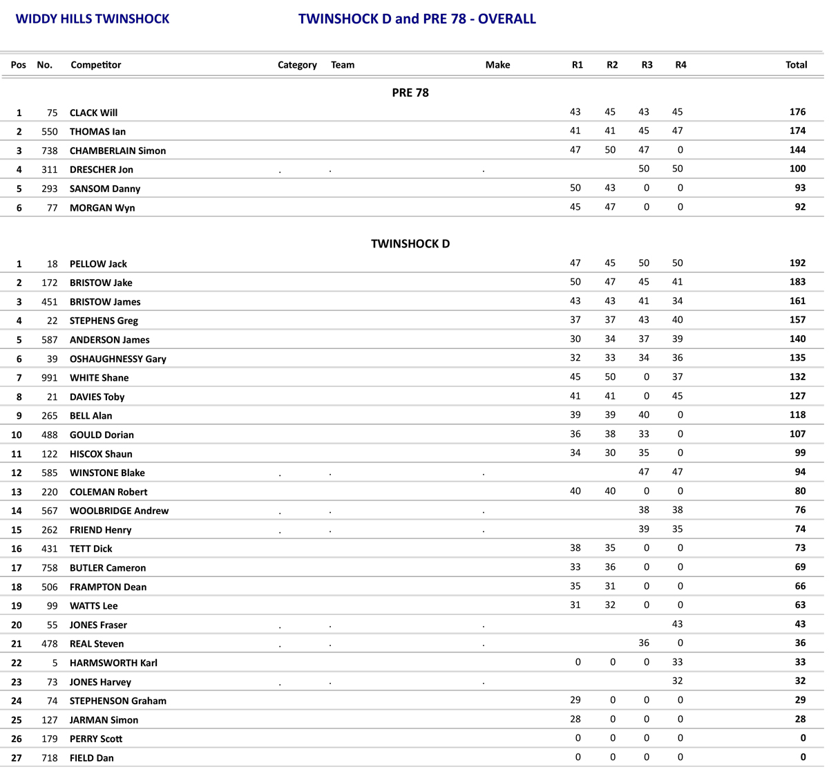 Twinshock D class saw some good racing with Jake Bristow and Shane White taking a win each on the Saturday, but on the second day, there was no stopping Jack Pellow, who took both race wins, and with it, he took the overall from Jake Bristow, with James Bristow taking third overall.