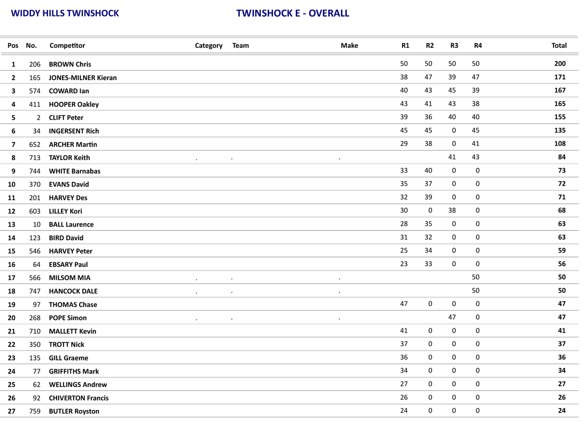 In the Twinshock E class, there was a fine performance from Chris Brown, who was to win all four races.