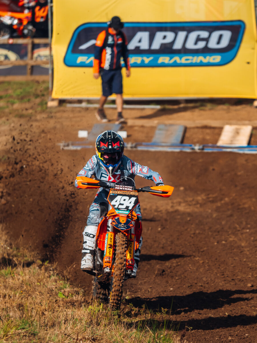 Round six on Saturday would see Oriol Oliver qualify third quickest with Max Werner in tenth. Heading into race one, Oriol was fourth off the start and set his sights on the lead with Max managing a top ten start. Oriol made some good passes to put himself into second position behind holeshot man Ben Mustoe and started to apply the pressure. Oriol bided his time and figured his lines and then made the pass happen at the halfway point. Max was also in amongst the action slightly further down the order. Oriol secured the win with Max in thirteenth place.