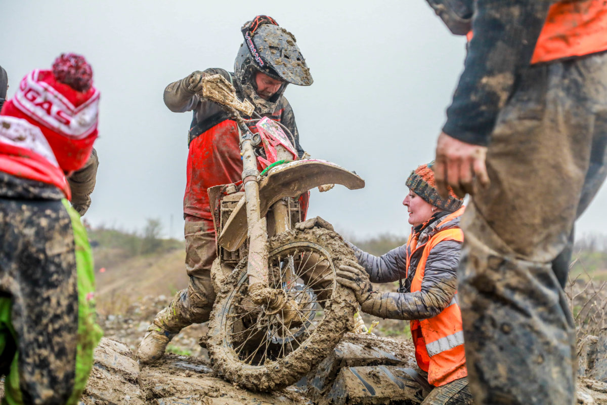The Kirton Off Road Centre was wet, claggy and muddy with lots of standing water to contend with as well as some super tricky man-made sections, lots of slippery rocks, and some long punishing hill climbs which produced bottlenecks on the first couple of laps.