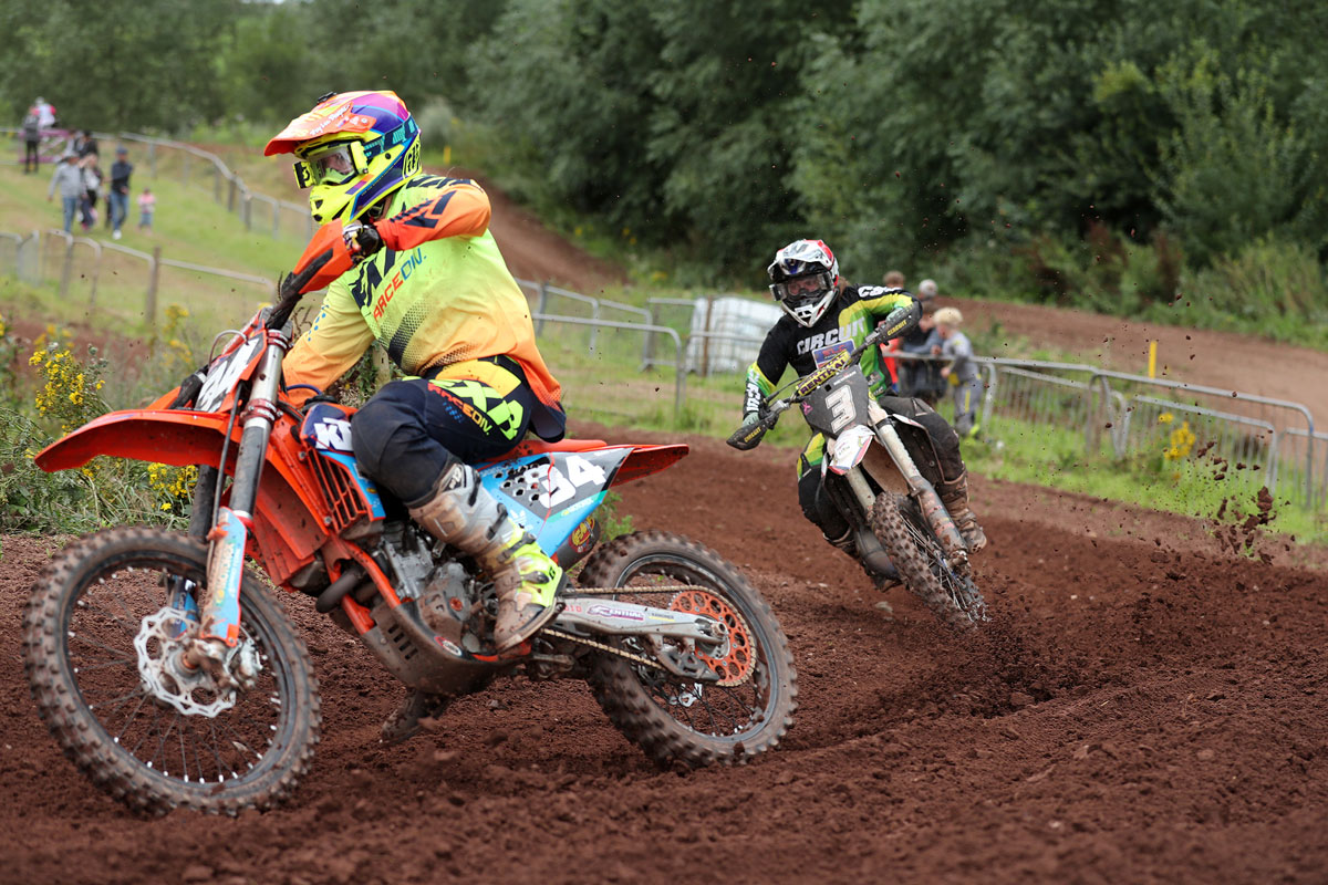 After the first Open class moto of the day had kept very much to the storyline of the season so far, with James Dodd nicking a very narrow win ahead of title rival Henry Williams, it was then all change in the remaining two moto’s. Stirring it up was ACU Revo Championship rider Callum Green who was to take both of the victories. Entered as a Wildcard, Green led moto two all the way as Williams and Dodd disputed 2nd place with the latter getting the verdict by making a very daring pass on the final lap and with the chequered flag insight! Taking a strong 4th in this one was Will Hughes ahead of Harvey Tillotson and Ryan Mawhinny who had travelled to the event from Northern Ireland.