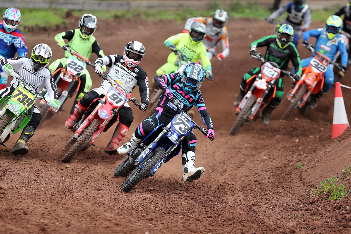So far this Championship season, it’s been the old one-two at the front of the combined Youth 125cc/BWMA Women’s series with the immaculate Shane Jones on his Apex GasGas UK machine taking the win ahead of KTM mounted Wyatt McGregor. In moto one though at Long Lane it all changed with Wyatt’s motor coughing and spluttering as it struggled for power whilst Jones again marched away at the front. That sick engine left Wyatt in last place, losing another 44 points on Jones in the title race. In that opening contest, Travis James, Jack Evans, Caiden Jai Griffiths, Will Turner and Phillip Tchorek were next best.