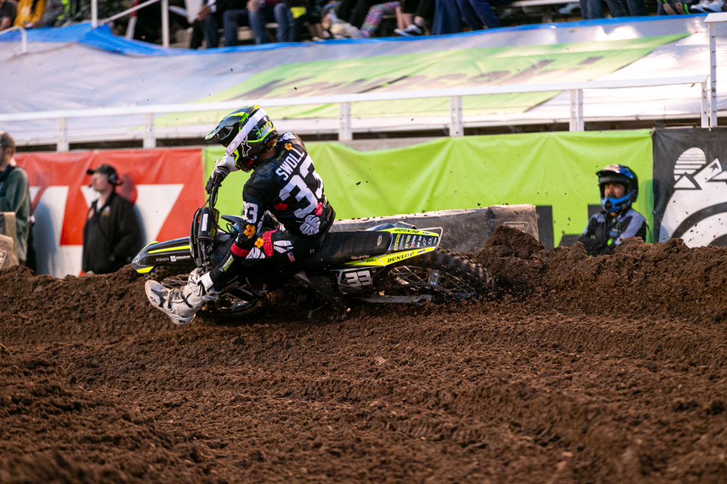 Swoll was able to finish ninth and pick up enough points to conclude the season in seventh overall. Although a debut podium fell just out of reach this season across the nine rounds, the Triumph TF 250-X displayed consistent front-running pace, bolstered with a Heat Race win and holeshots. This foundation performance gives the team confidence ahead of the outdoor motocross season beginning later in May.