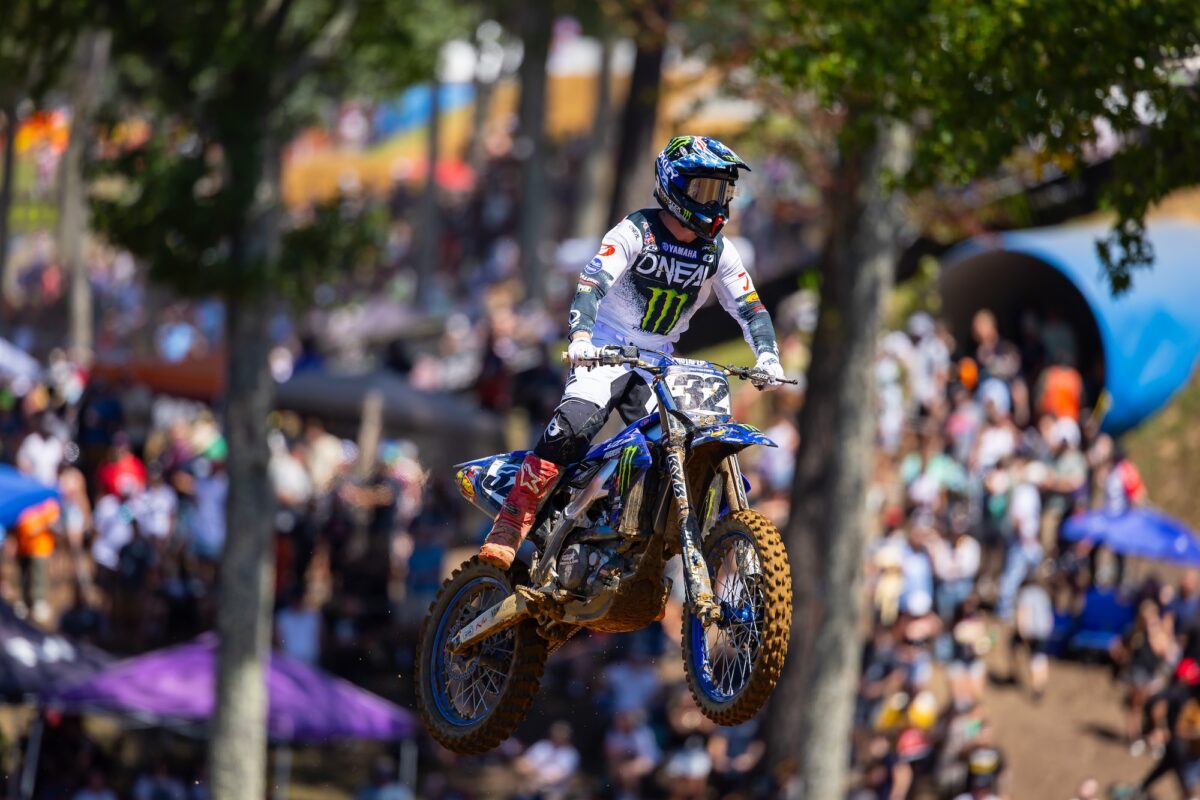 Back out front, Jett Lawrence took an uneventful moto win, his 16th of the season and 42nd of his career, by 2.9 seconds over Cooper, who fended off Hunter Lawrence for the Yamaha rider’s first moto podium since the sixth race of the season at RedBud. Hampshire followed in fourth, with Monster Energy Yamaha Star Racing’s Eli Tomac in fifth.