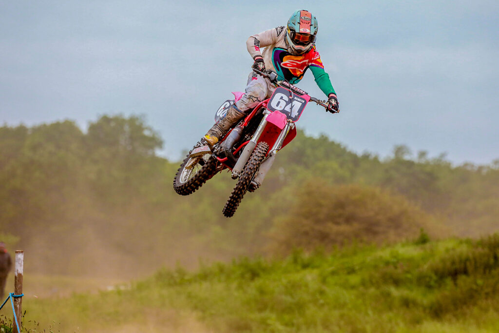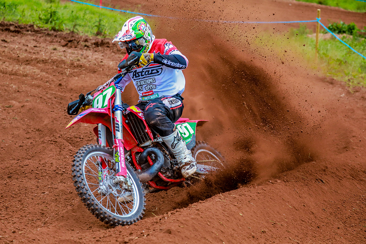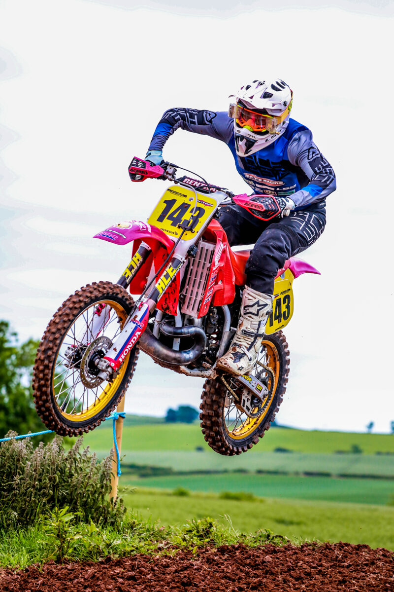 Kris Winder and Matt Rudd had some tremendous battles in the 125 Twinshock class, swapping places throughout each race, but it was Winder who continued to dominate the class, eventually taking all three wins from Rudd in second. Mark Burrows took third, just in front of Robin Cowgill. The Pre 83 winner was Brandon Brockley.