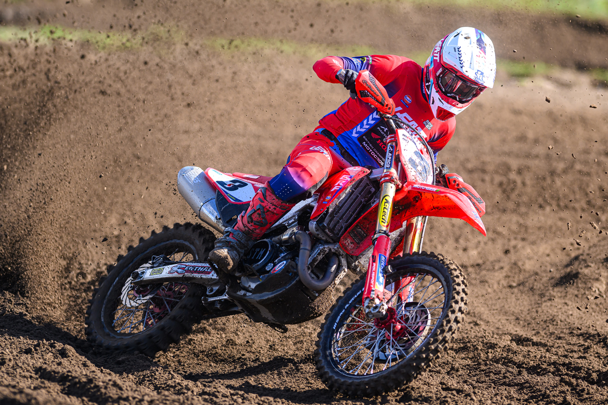 Tom managed to get inside the top 20 and push past 8 riders by the midpoint of the race, though the rest of the field had got away, so it was a lonely race for him to bring his Honda CRF450R home in 12th place. Tom decided to change his suspension settings for the second race because he didn’t feel he could push as hard as usual.