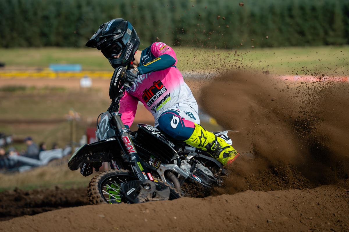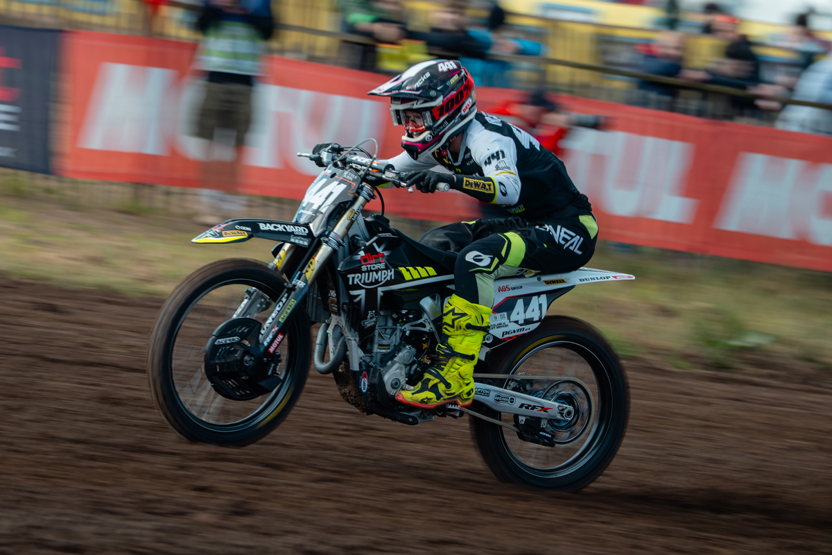 Dirt Store Triumph moved one step closer to the 2025 Motul ACU British Motocross Championship MX2 title as Tommy Searle claimed first and third overall finishes in Duns to extend his championship lead. Billy Askew and Joel Rizzi were less fortunate – Askew crashed on Saturday, ruling him out for the weekend, while Rizzi went down at the start of Race 2 and was unable to continue.