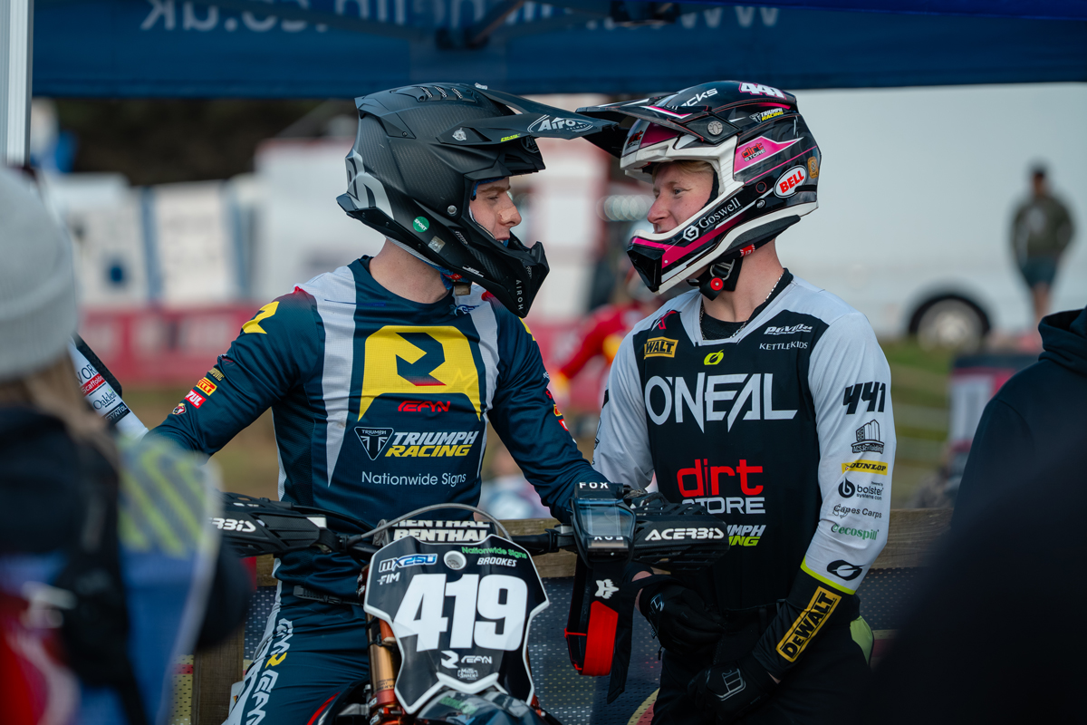 Overall, it was a strong weekend for the team in the MX2 title fight. With so many races and points up for grabs over the course of a double-header, to come away with an overall win, a podium, and valuable championship points across both days marks an excellent trip north of the border. Tommy continues to impress as he battles with some of Europe’s and England’s fastest rising talents, yet still comes out on top, with the red plate firmly mounted on his Triumph machine heading into the final round at Lyng. Unfortunately for Billy and Joel, their weekends were cut short due to crashes, but both showed plenty of promise before being sidelined.