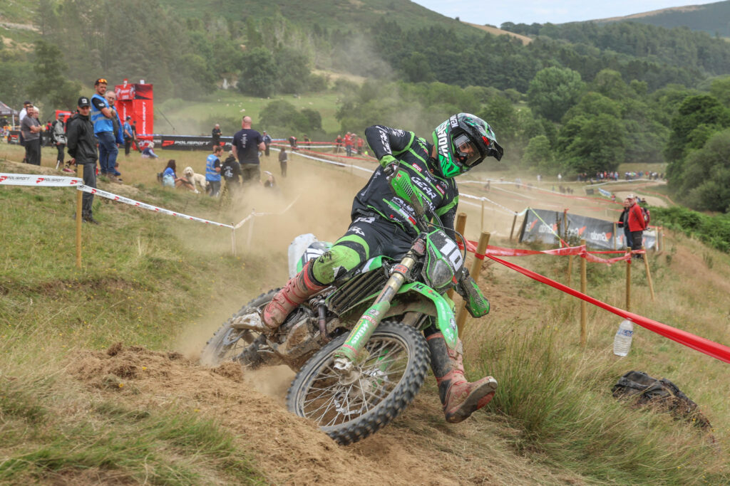 Ending lap one of three 13 seconds clear of GASGAS Factory Racing’s Andrea Verona in second, Garcia was determined to keep building on that advantage as riders began lap two. Again topping the POLISPORT Extreme Test, and then winning the GMOTO Enduro Test by two seconds over Verona, the Spaniard was now 20 seconds in front and edging closer to the day’s win. Winning the final POLISPORT Extreme Test, he managed his gap in the remaining two tests to seal victory on day one in Rhayader.