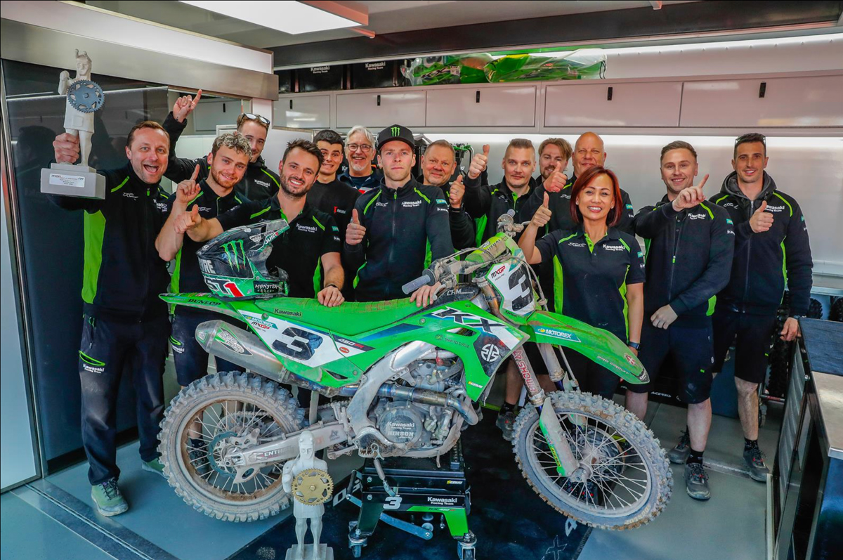In addition to Febvre’s personal career landmarks the success also marked the three-hundredth motocross GP victory by a French rider. It was Febvre’s ninth success in Green; other Kawasaki riders to have stood proudly on the top step of the podium whilst La Marsellaise was played have been Sébastien Tortelli (20 GPs), Livia Lancelot (15), Mickael Maschio (7), Christophe Pourcel (6), Sébastien Pourcel (5) and Dylan Ferrandis (2) with one win each for Yves Demaria and Steven Frossard.