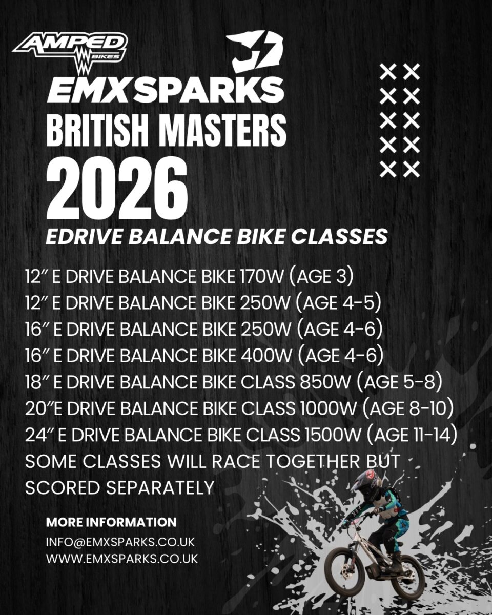 EMX Sparks, the club that caters for Electric and Petrol Youth Dirtbike riders from the age of 3 upwards are gearing up for a huge 2026 season where they will be hosting their six-round Amped British Masters Championships between Monster Mountain MX and a new track at Motoland just off of Junction 18 of the M4.