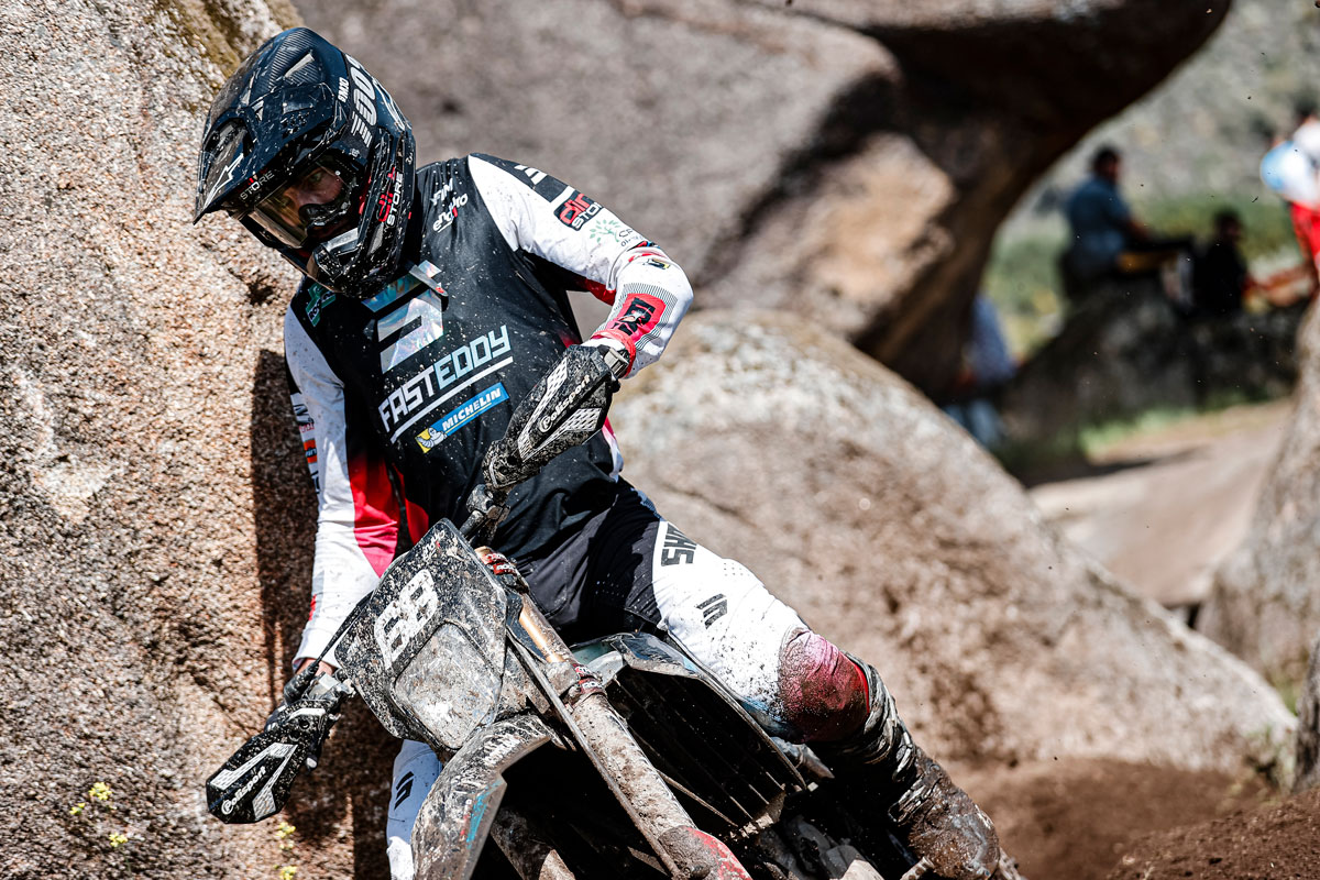 The north of Portugal has a unique and impressively rocky landscape. The POLISPORT Extreme Test in Valpacos took advantage of the giant boulders and rugged terrain with a special test that was highly challenging. Taking three of the fastest times from a possible six, Honda Racing RedMoto Enduro Team’s Steve Holcombe showed he had the measure of everyone when the clock was ticking.