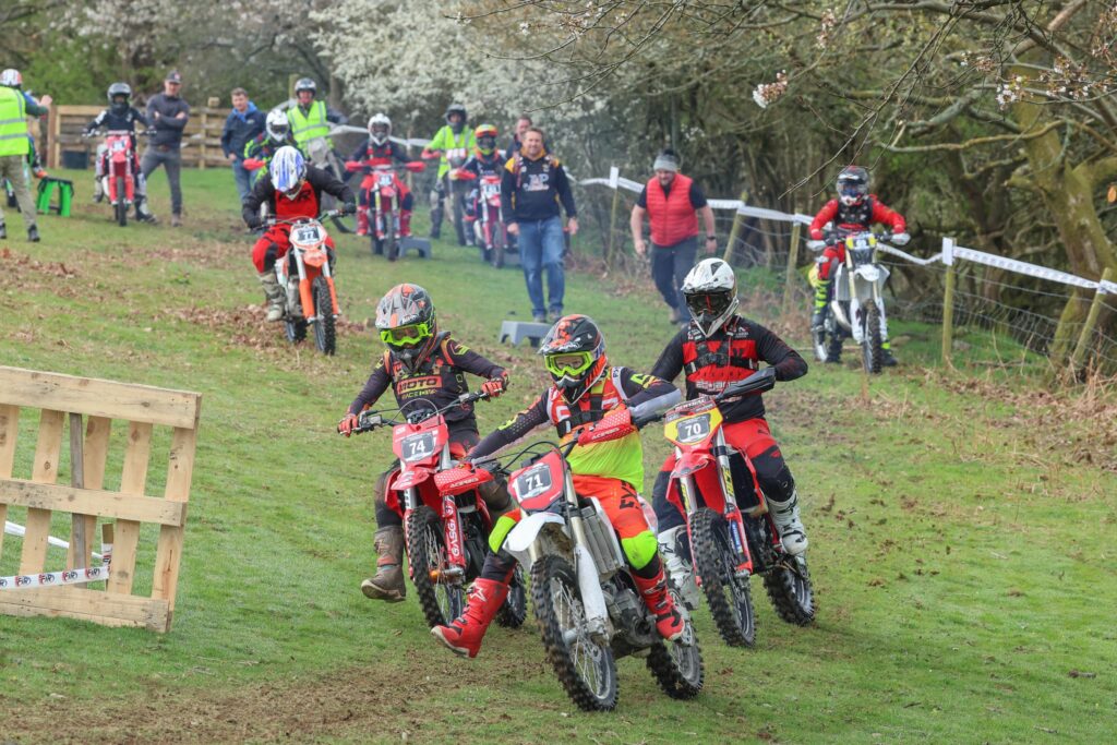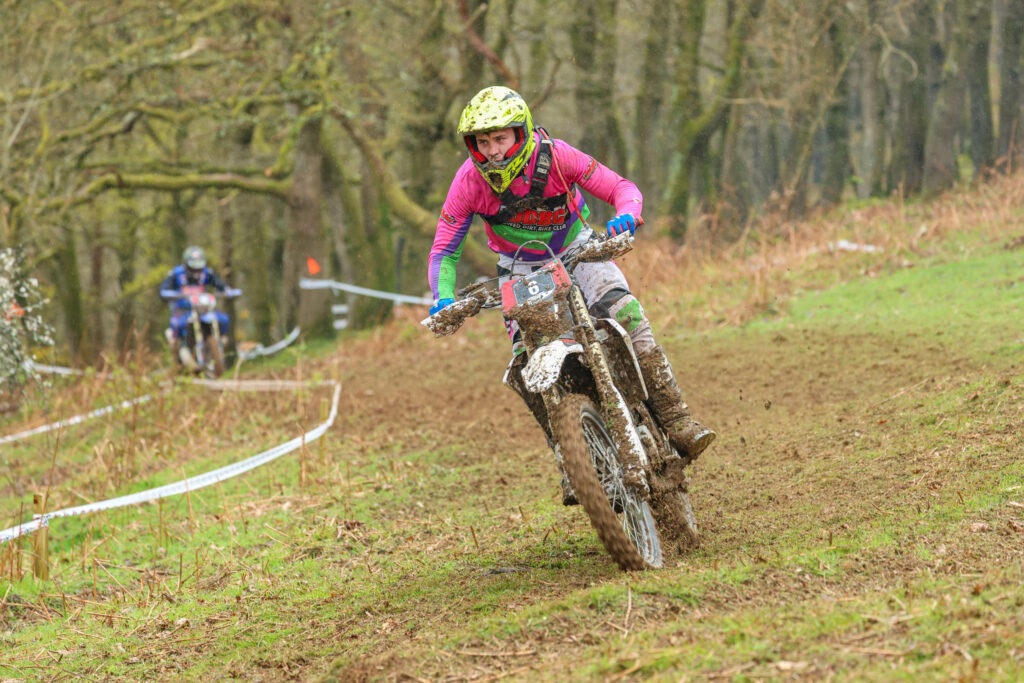 With the adults race kicking off just after lunch time for a two and a half hour blast over the farm files and woods that linked the valleys up Roger Holland took the win in the Championship Class aboard a Sherco the odd rain shower had made parts of the track demanding but ridable.
