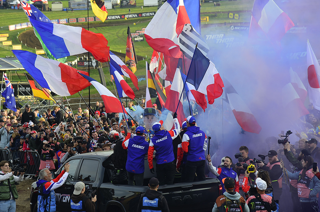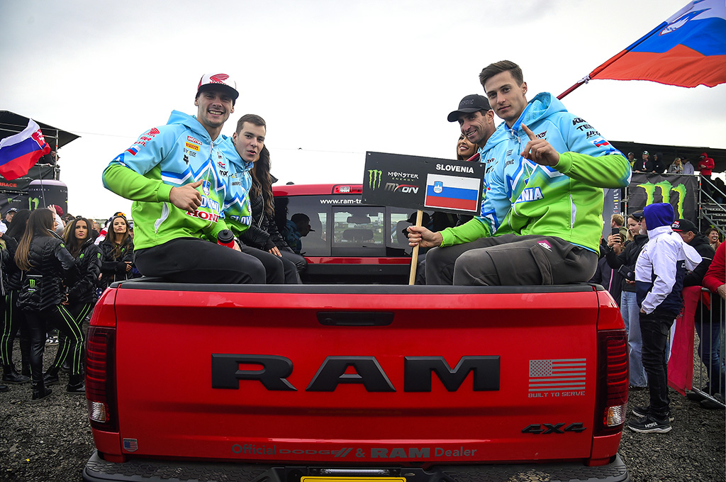 Then came the moment to introduce the 36 teams participating in the battle for the Chamberlain Trophy this weekend. Each country proudly presented their trio of riders who will carry their flag at the 2024 Monster Energy FIM Motocross of Nations. The riders embarked on a small tour by the starting gate, each team on the back of a RAM Truck, in front of a boisterous crowd who have only just begun to enjoy the weekend-long party that is the Monster Energy FIM Motocross of Nations!