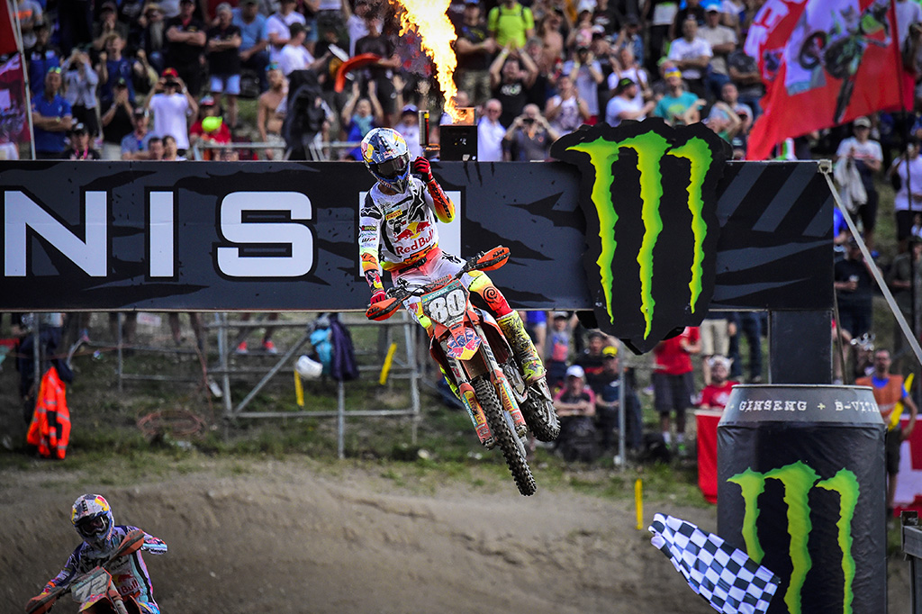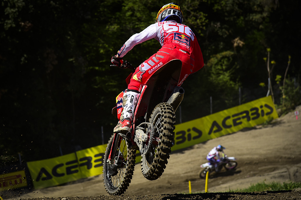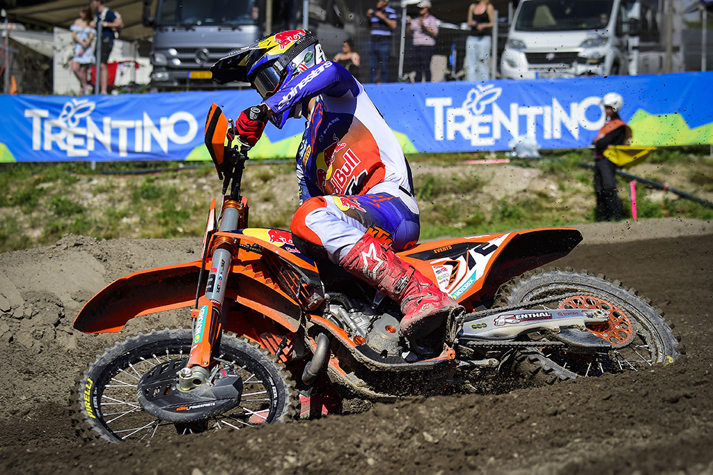 The sun shone again for MXGP in the beautiful setting of the Garda mountains for round four, the MXGP of Trentino, and in front of the natural hillsides that were already crammed full of fans, the RAM Qualifying Race wins were taken by new riders for this season! Romain Febvre was victorious in MXGP for the Kawasaki Racing Team, with the MX2 battle being won by home favourite Andrea Adamo as he fended off a late charge from Red Bull KTM Factory Racing teammate Liam Everts to send the Italian fans home in a very happy mood!