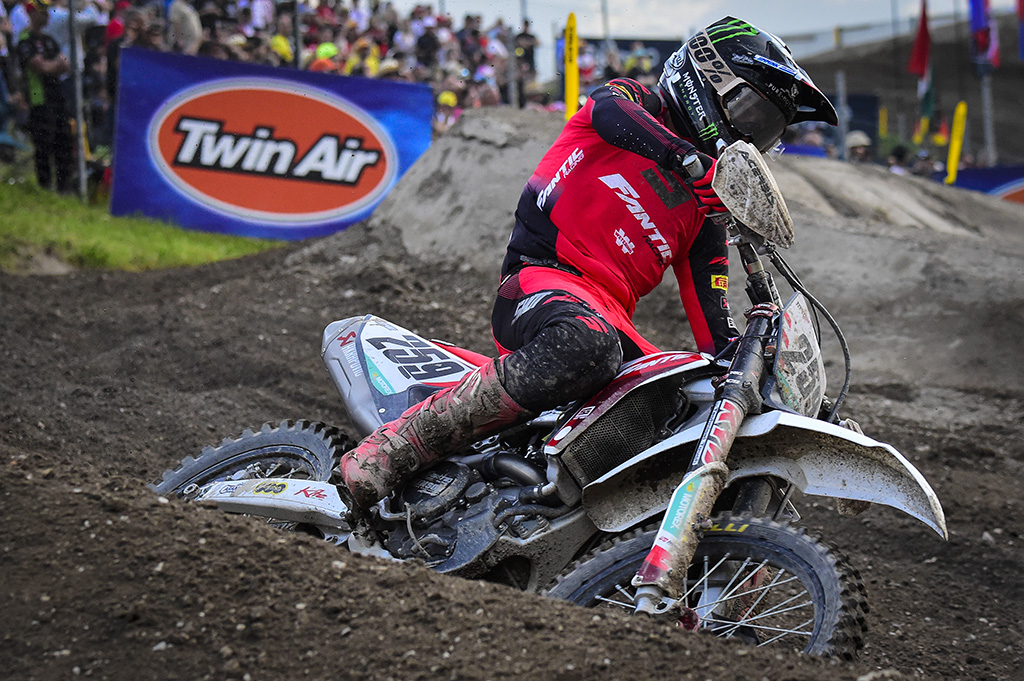 At around half-distance, Gajser managed to leap over Coldenhoff’s head as the Dutchman couldn’t clear the big uphill triple jump after turn two, but the Fantic man held Herlings back to claim his best finish of the year so far in third.