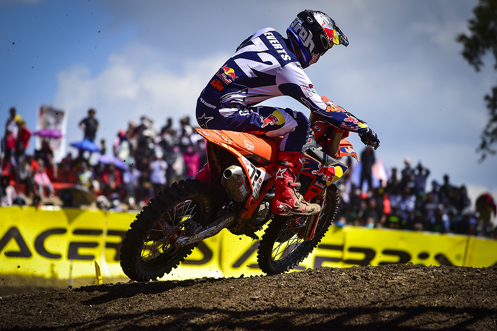 Following the RAM Qualifying Races, Romain Febvre, Lucas Coenen, MX2 Red Plate Red Bull KTM Factory Racing’s Andrea Adamo, Red Bull KTM Factory Racing’s Liam Everts and Kawasaki Racing Team MXGP’s Mitch Evans took part in the press conference where they all reiterated they appreciation for the track and the double header events here in Indonesia.