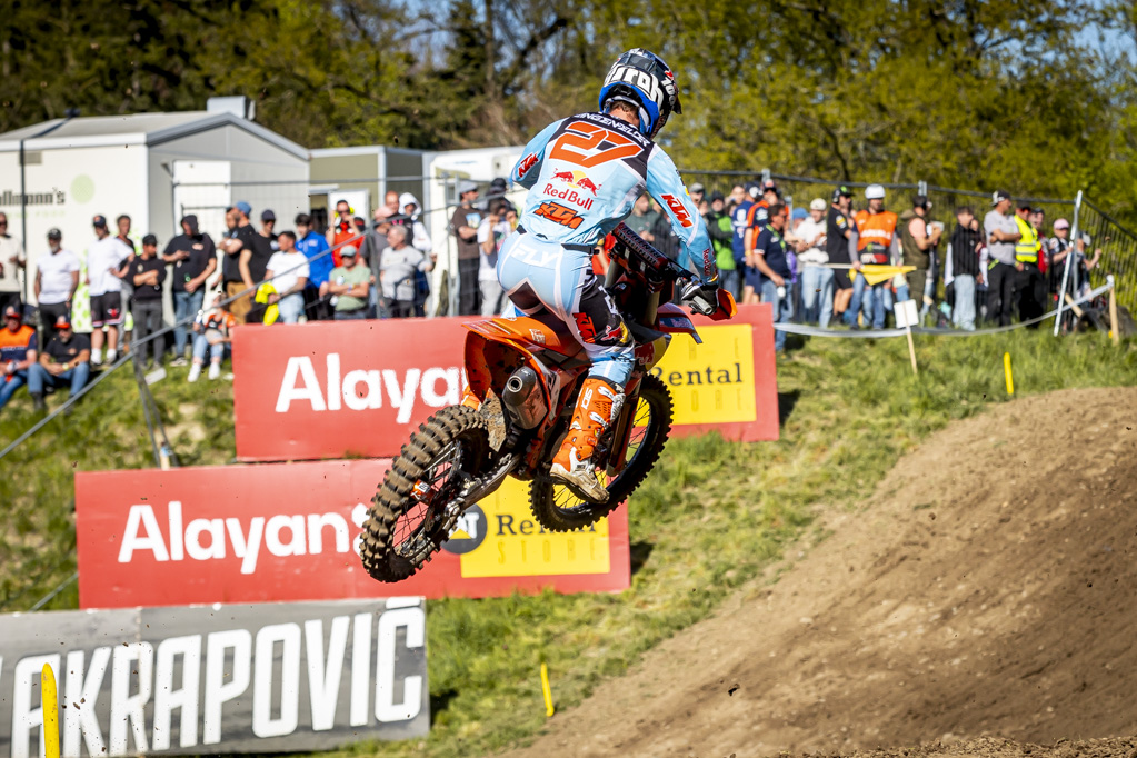 It took three laps to then find his way past Herlings as arm pump kicked in for the Dutchman, who is still working his way back to fitness, and the Slovenian quickly moved to within striking distance of his teammate.