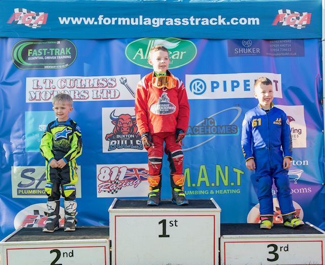 Elsewhere in the Senior field, Matt Davis suffered a heavy fall in his final race, resulting in a concussion, bruising to the hips and several broken ribs. Everyone at Formula Grasstrack wishes Matt a full and speedy recovery.