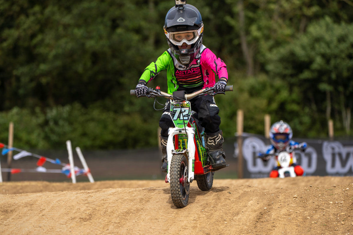 The Mini E class was absolutely rammed with 26 riders going full guns blazing at it over the two days. Each rider had two points scoring qualifying races to determine which Final they would qualify for, A, B or C.