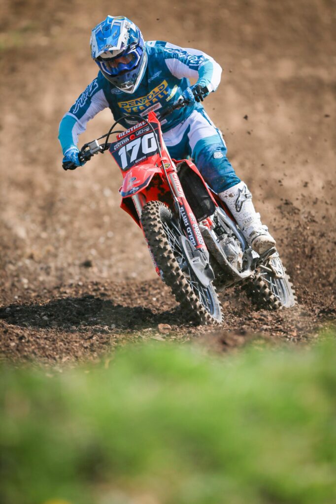 In Moto 1 the 65cc class was led by Arthur Pozzoli who bagged his first-ever 65 race win. For the rest of the day, he battled out with Rio Cook for first. Cook took the overall with 2,1,1. Pozzoli had to settle with second overall but went home happy with his moto 1 victory (1,2,2) Rafe Symons rounded off the podium in that class with 3,4,3.