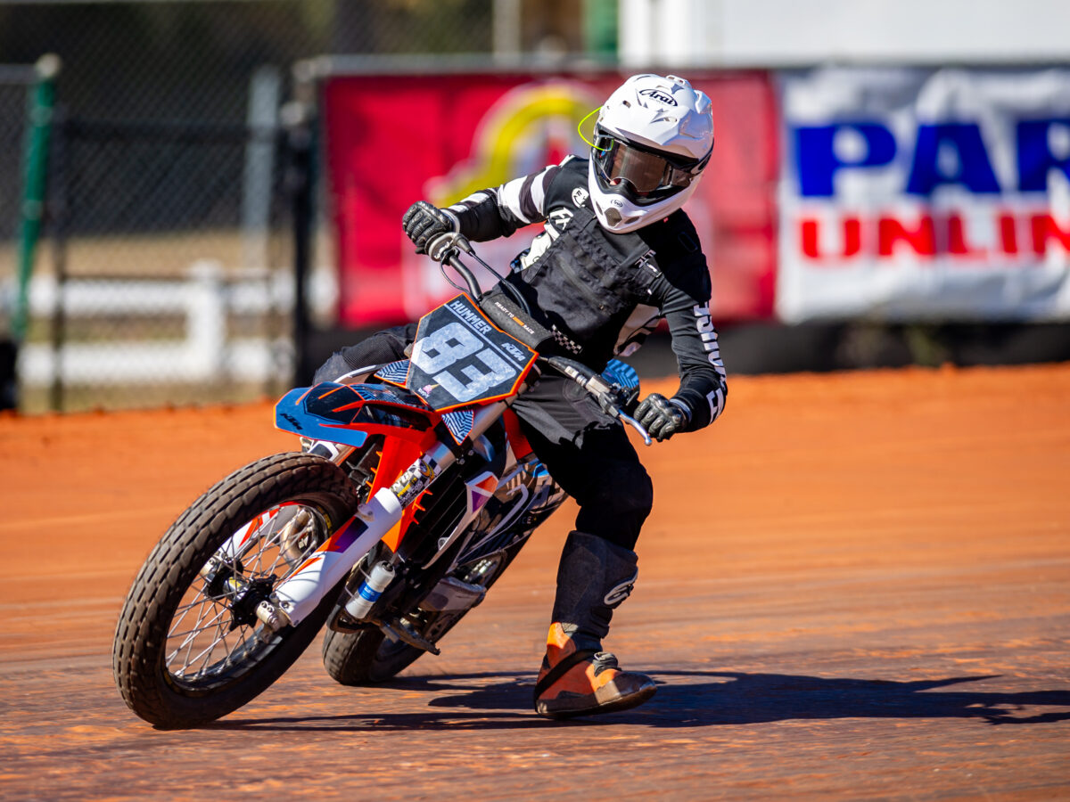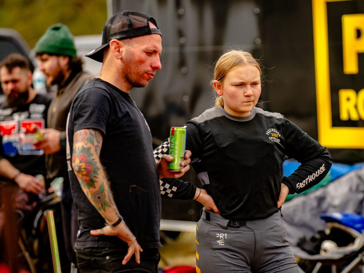 Jack Bell, Adam James and Jacob James were all racing on the Thursday evening in the 1v1 head-to-head Pro-only races, with over 50 entries and only 20 racers making it past qualifying into the knockouts, we knew it was going to be tough. Bell qualified in 25th position, only 0.038 seconds off the knockout spots. Adam James qualified in 26th position, just 0.045 seconds off. Jacob James qualified in 42nd position 0.3 seconds, considering we were all riding borrowed bikes, with little practice, against some of the world’s best flat trackers we were happy with this, all riders improved from the prior visit in 2025 and we knew what bike set up changes to make before racing in the Premier Expert and Open Expert classes on Friday and Saturday.