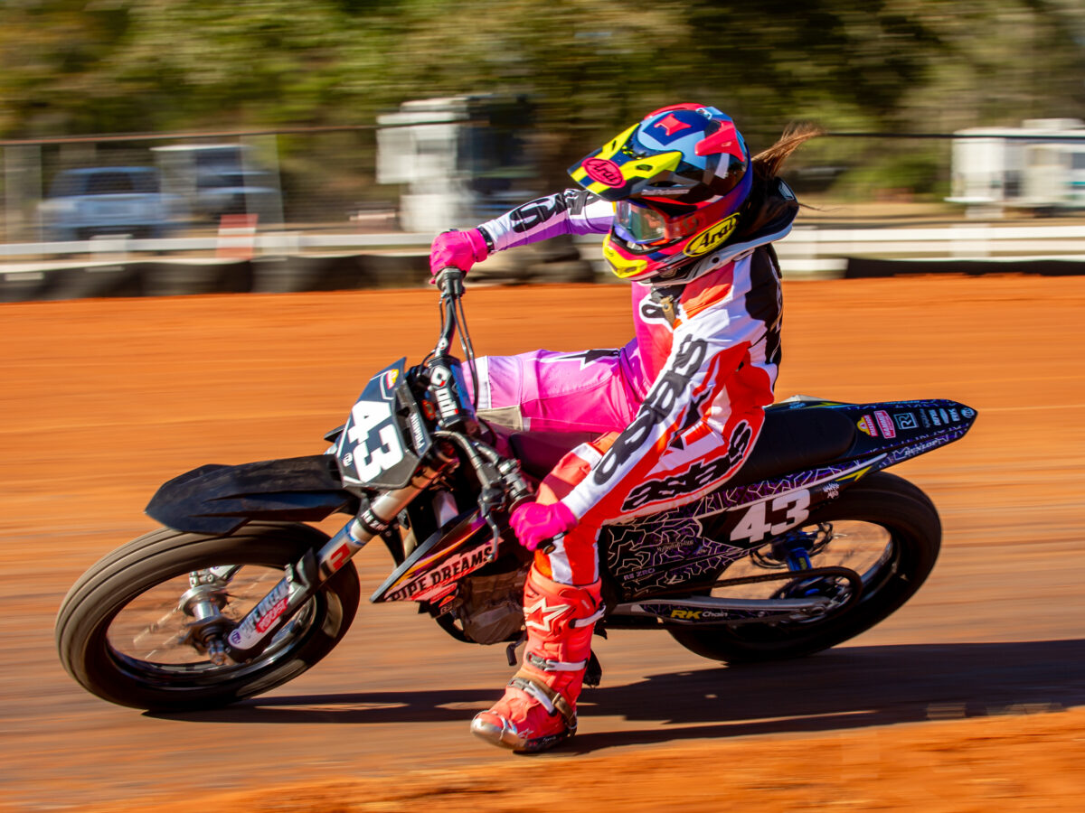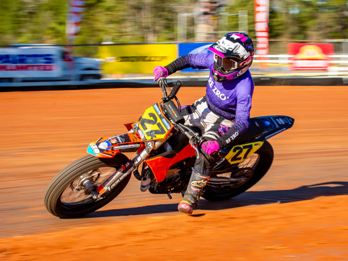 Skye Adams, Jamie Kimber and Nicole Miles kicked off the day racing in the Women’s Class in Group One. Adams finished 7th in the Women’s final with strong lap times, Kimber finished 10th after some battles and trying some lines which she learned were slower, as you can see by her day three results. Miles also had strong lap times but just missed out on the Main by 1 position.