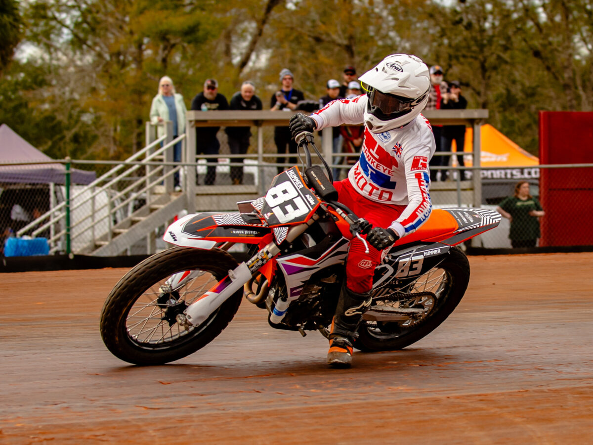 Sixteen of us flew from the UK to Orlando, landed and jumped in the hire vehicles to head to Southern Training Facility in Bainbridge, Georgia. We arrived there at around 3am and got some rest ready to start practice at 11am the next morning. With help from Rory, James Parker and his team, we all had bikes ready to jump on and start testing pre-race day at our exclusive practice day with some big names in the American Flat Track scene, such as Chad Cose, Declan Bender and Bradon Pfanders.