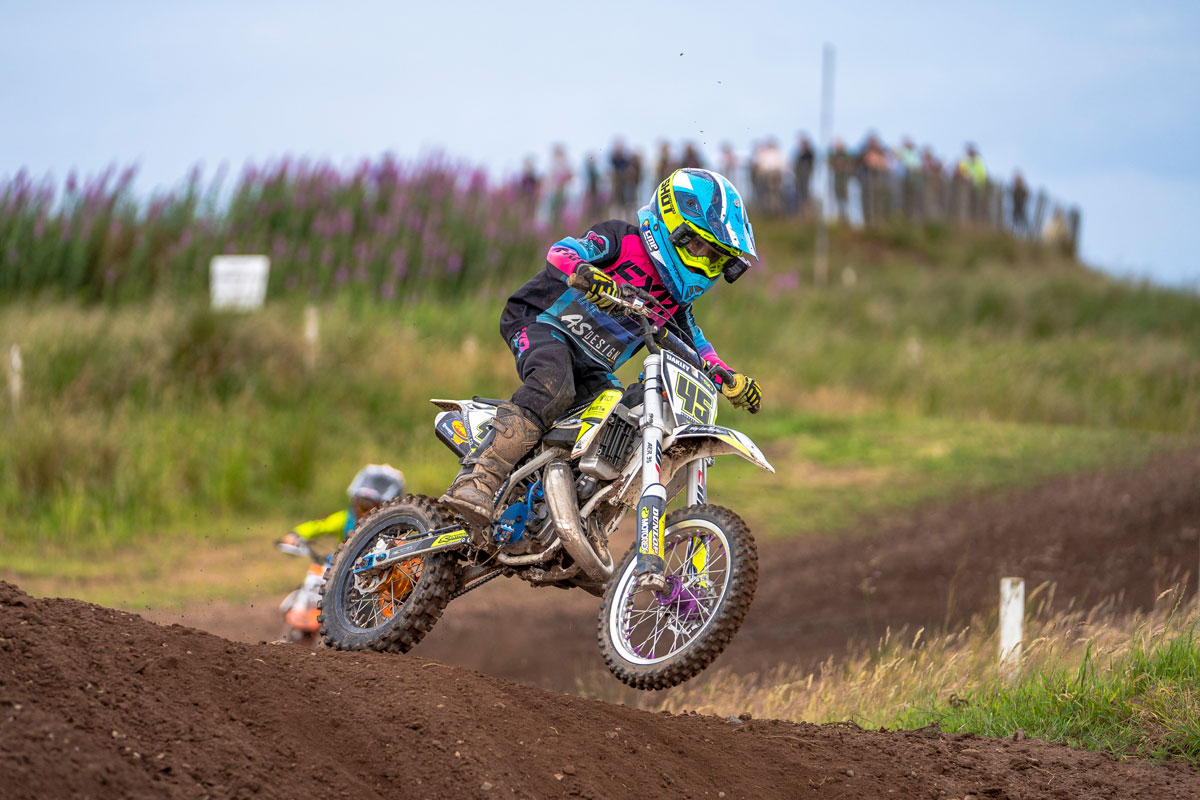 In the Small Wheel 85 class Robbie Scott was the second rider of the weekend to take six wins from six starts as he dominated the Small Wheel 85 category for the second day in succession. Connor Thompson chipped away at the points deficit even more by taking runner up overall while series leader Declan Cook had a much improved day for third overall.