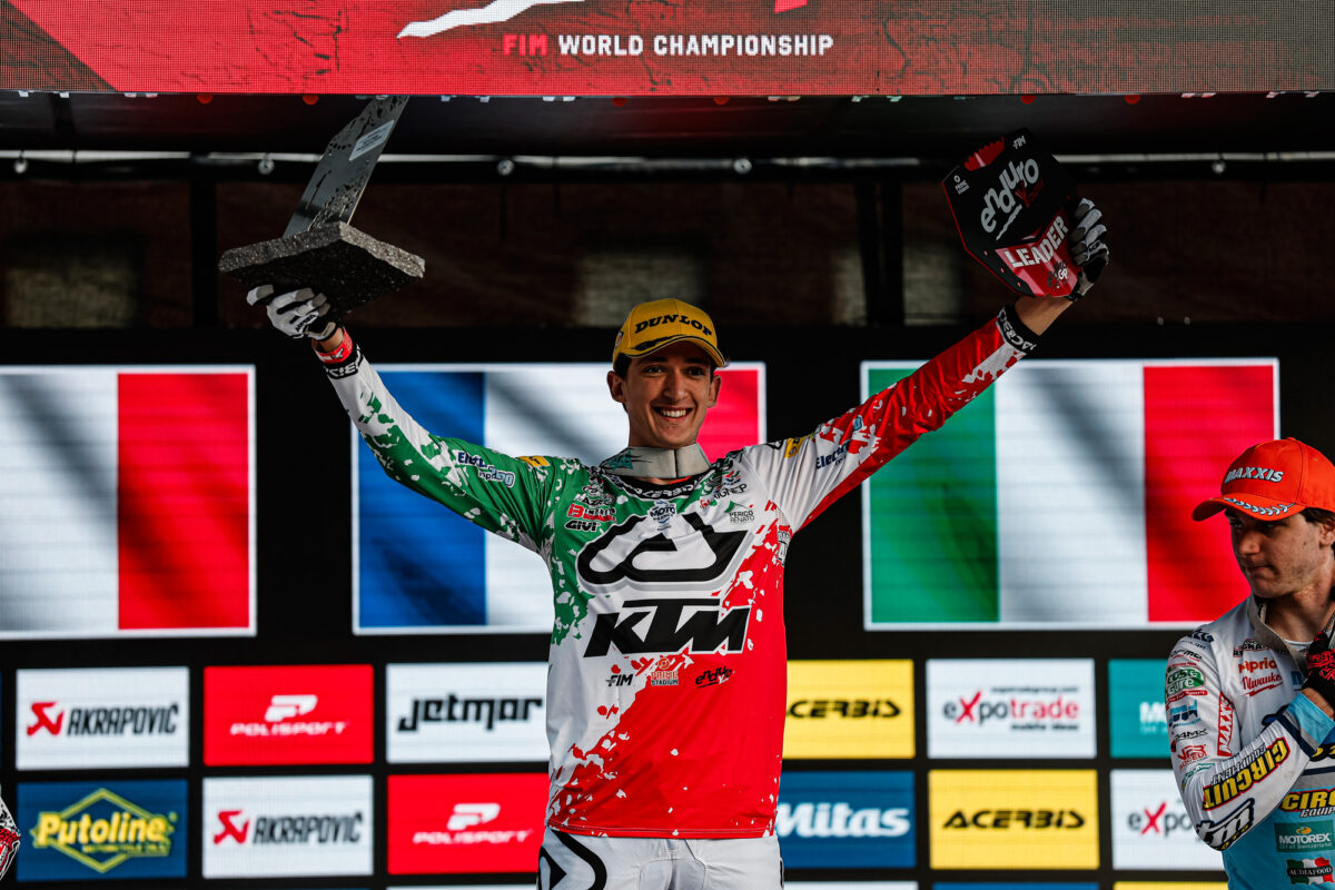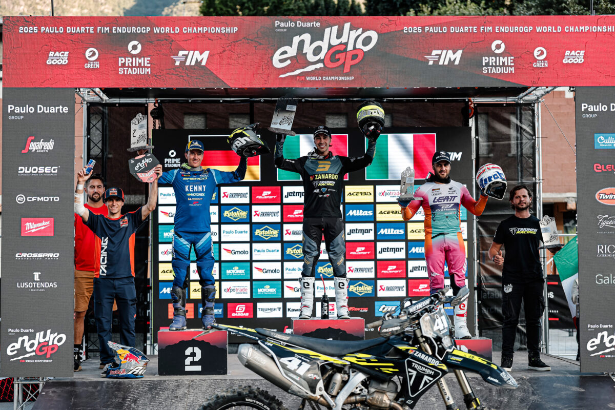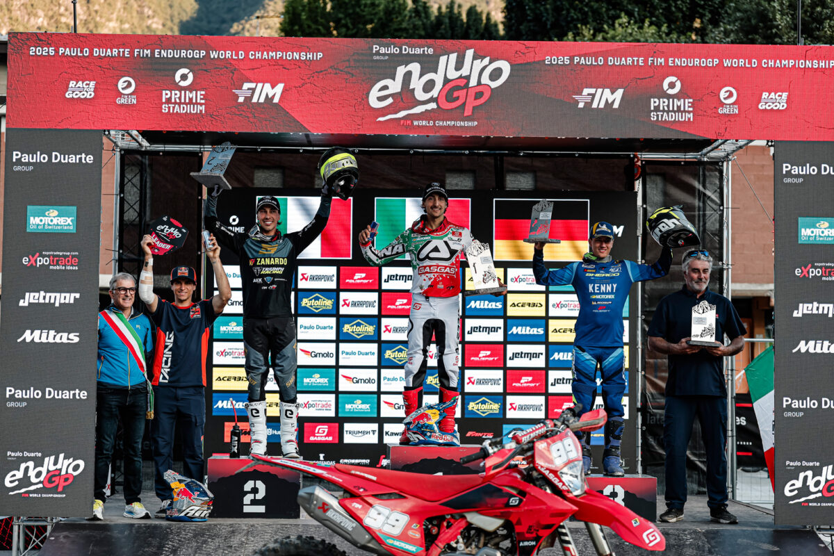The final day of racing at the POLISPORT GP of Italy saw Red Bull KTM Factory Racing’s Josep Garcia secure the FIM Enduro1 World Championship. GASGAS Factory Racing’s Andrea Verona claimed the EnduroGP win, with Triumph Italia Racing’s Morgan Lesiardo and Sherco Racing Factory’s Jeremy Sydow debuting on the podium in second and third, respectively.