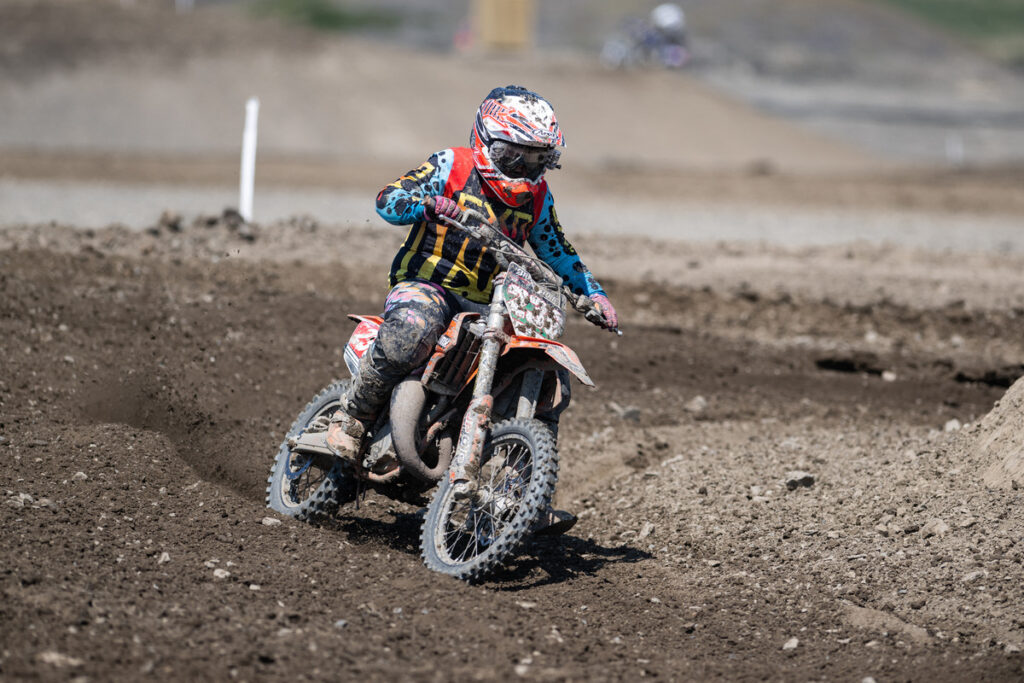 Reece Jones (SJP Moto Husqvarna) was third in his first race of the weekend, but from then on won the other three for first overall in the Fly MXY125s. Jake Walker (Mr T Racing KTM), who didn’t finish out of the top four all weekend, was second, with a race-three low score pushing Tyla Hooley (Fantic) down to third.