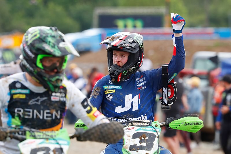 Romain Febvre: “I worked really hard to be able to race today but the pain in my thumb was still quite high this morning and I surprised even myself in the first race to finish third as I had to ride through a lot of pain; I did a really good job but I knew before the start I would not be able to hold on for the entire race. But when it started to rain again I said to the team ‘this is what I need’. I was riding great after I took another holeshot and was riding a perfect race; I could ride my own race to manage my gap to second, but with four laps to go I had a really bad time with one lapped rider whose actions meant I had to roll two jumps. That was just not fair and my goggles got filled with water too. When I came to the finish I couldn’t understand why the fans were cheering at first because I thought I had missed the overall after Jeffrey passed me on the last lap, but then someone told me Tim had fallen off. It was so great to share this victory on the podium with the fans; they stood out in the rain for me yesterday and again in race two today. Thank you to every one of you for your support. But then, after the podium celebration, came the disappointment.”