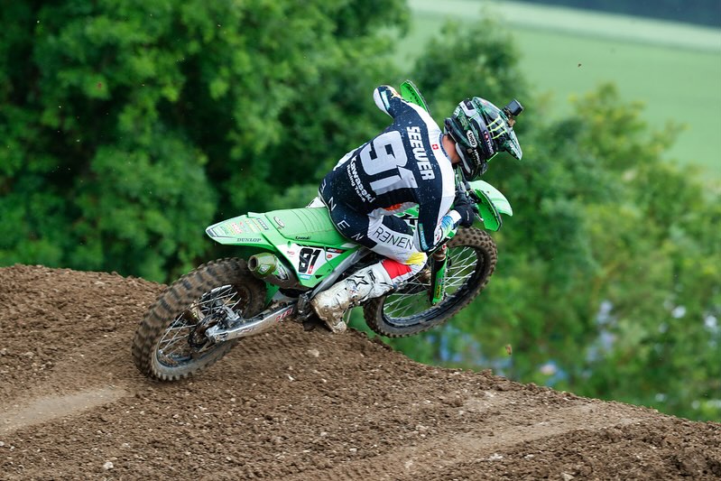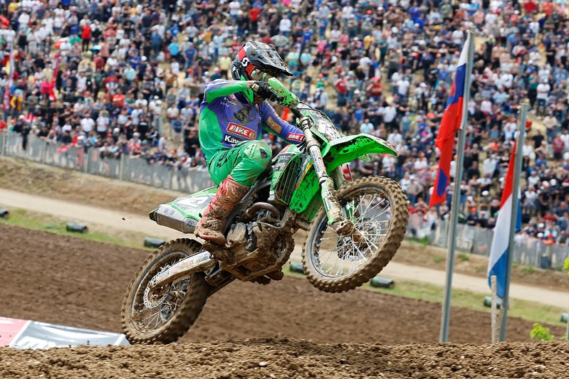 KRT teammate Jeremy Seewer continued to build throughout the weekend. Quickly converting a fifth-placed start to fourth in race one he shadowed the red-plate holder until a single mistake in the closing stages broke the contact, and an enthralling start to race two saw the Swiss complete a Kawasaki twin-holeshot. Surrendering two placings in the unpredictable muddy conditions which reigned throughout the moto he eventually took the chequered flag fourth but was penalised two positions a quarter-of-an-hour later for allegedly “not respecting a waved yellow flag”, which was unseen by both the Swiss rider and the other rider to be penalised for the same offence. Despite the penalty he was classified sixth on the day and retains the same position in the series points standings.