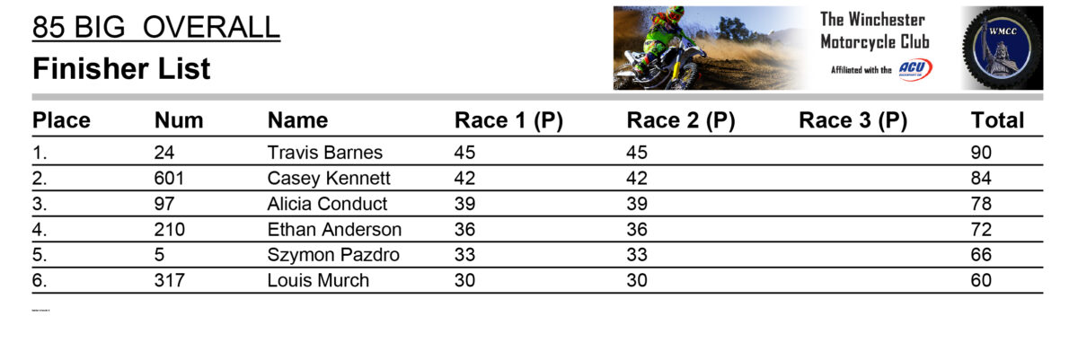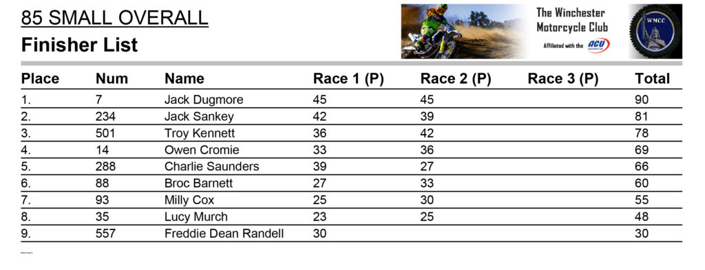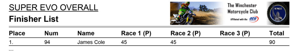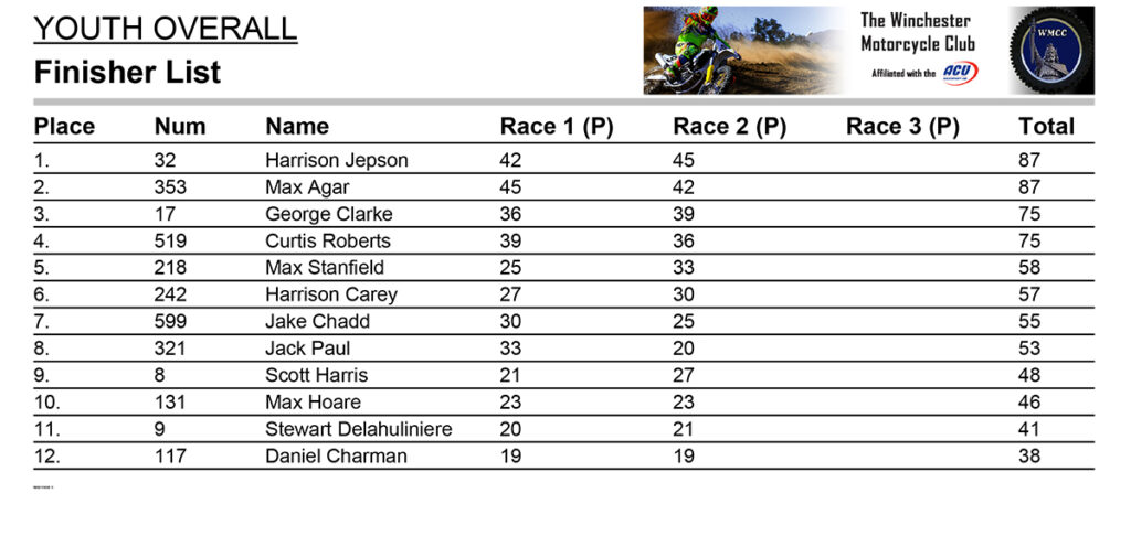 Southern Centre MXY (Youth championship) saw Harrison Jepson battle with Max Agar throughout the day to take one win each. George Clarke fought with Curtis Roberts for third, with George Clarke fighting hard to hold the championship lead, but he now ties on points with Max as we go into round three.