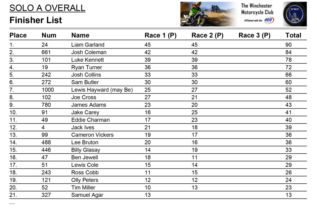 The Southern Centre Open championship was dominated by Liam Garland who took two great wins, ahead of Josh Coleman in each of the race with Luke Kennett taking third. Liam hold a full house in the championship with maximum points across the two first rounds.