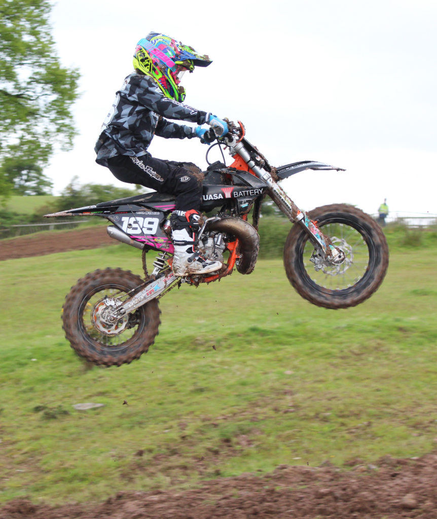 The 65cc Rising Stars class riders were racing with the 85 youth girls and there were some impressive performances from these young riders with the super talented Olivia Reynolds not only dominating the class but showing speed and skill beyond her years and a true Rising Star of the future. Race 1 saw Reynolds take the win but her speed put her 4th in the 85cc Youth class, 2nd was last years champion Poppy Banning followed by newcomers Angelica Bennett and Cameron Mansbridge having a great race between them. Race 2 and again Reynolds was right in the mix with the bigger girls finishing 3rd against the 85’s and another win in the 65’s this time it was Angelica Bennett taking second with Cameron Mansbridge 3rd and Poppy Banning fourth after a fall.