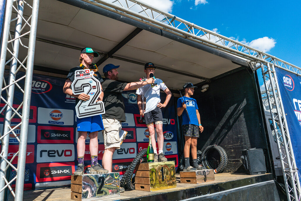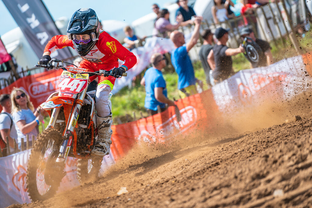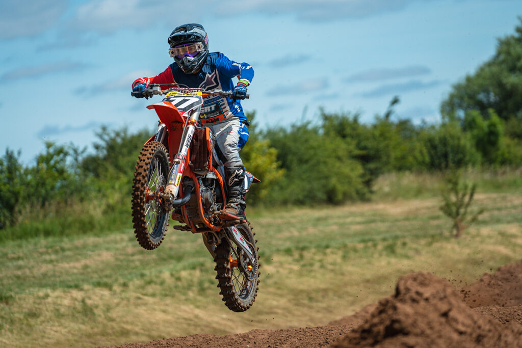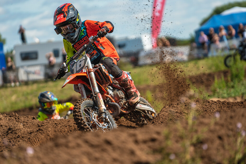 Our 85cc red plate holder, Billy Askew, had another astonishing weekend defending his championship lead. Billy came out the blocks flying, winning his first two races, and narrowly missing out in race three despite battling hard for the win. In Billy’s fine race, he pulled out a gap on his competitors until falling on the final lap. Askew raced back to his machine, rode his heart out and managed to win over his championship rival by 0.2 seconds, and claiming the overall while doing so. He extends his points lead to 46 points.