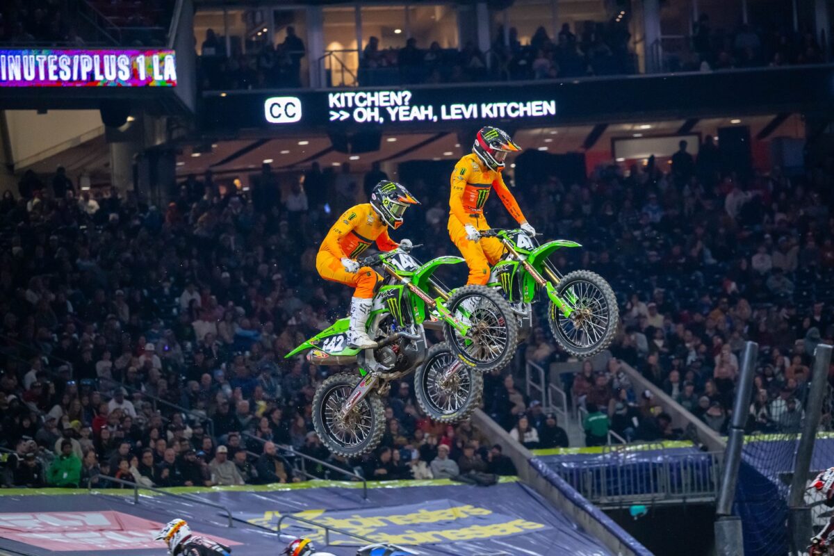 The Western Divisional 250SMX Class was much more straightforward as Monster Energy Yamaha Star Racing’s Haiden Deegan was the class of the field in each race. The reigning champion made a statement in Race 1 after he grabbed the holeshot and ran away with a wire-to-wire win by a margin of 2.0 seconds over Monster Energy Pro Circuit Kawasaki’s Levi Kitchen and his teammate Cameron McAdoo. In Race 2 Deegan secured another top three start and methodically worked his way forward. He made clean passes around McAdoo, who earned the holeshot, and Kitchen, who led most of the race, to bring home his second win of the night by 3.9 seconds. The third and final race was Deegan’s most challenging, as he and Kitchen engaged in a cat-and-mouse fight for third place early on. The Kawasaki rider made an aggressive dive under Deegan, but the Yamaha rider fought back and gave Kitchen a nudge as he reclaimed the spot. Deegan then tracked down his Monster Energy Yamaha Star Racing teammate Max Anstie for second and was patient before he made the pass on ClubMX Yamaha’s Max Vohland, who captured the holeshot, for the race lead. Once out front, Deegan never looked back and completed the hat trick by 1.3 seconds over Anstie. Kitchen and McAdoo followed in third and fourth.