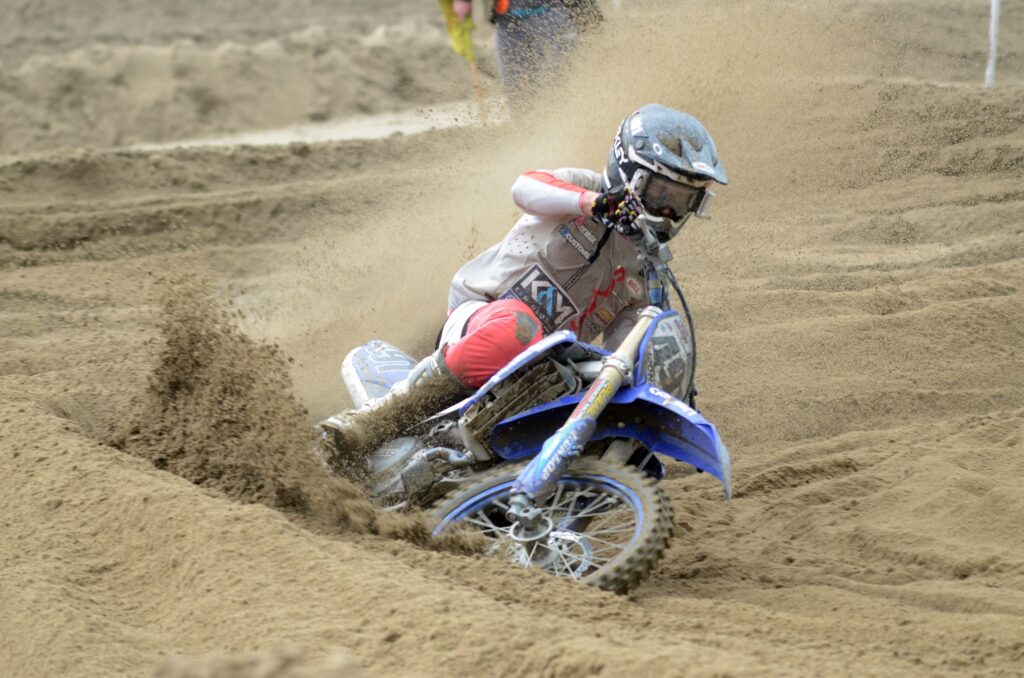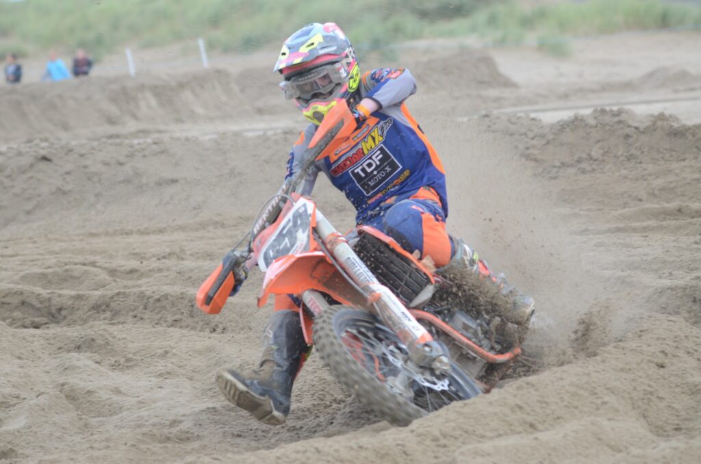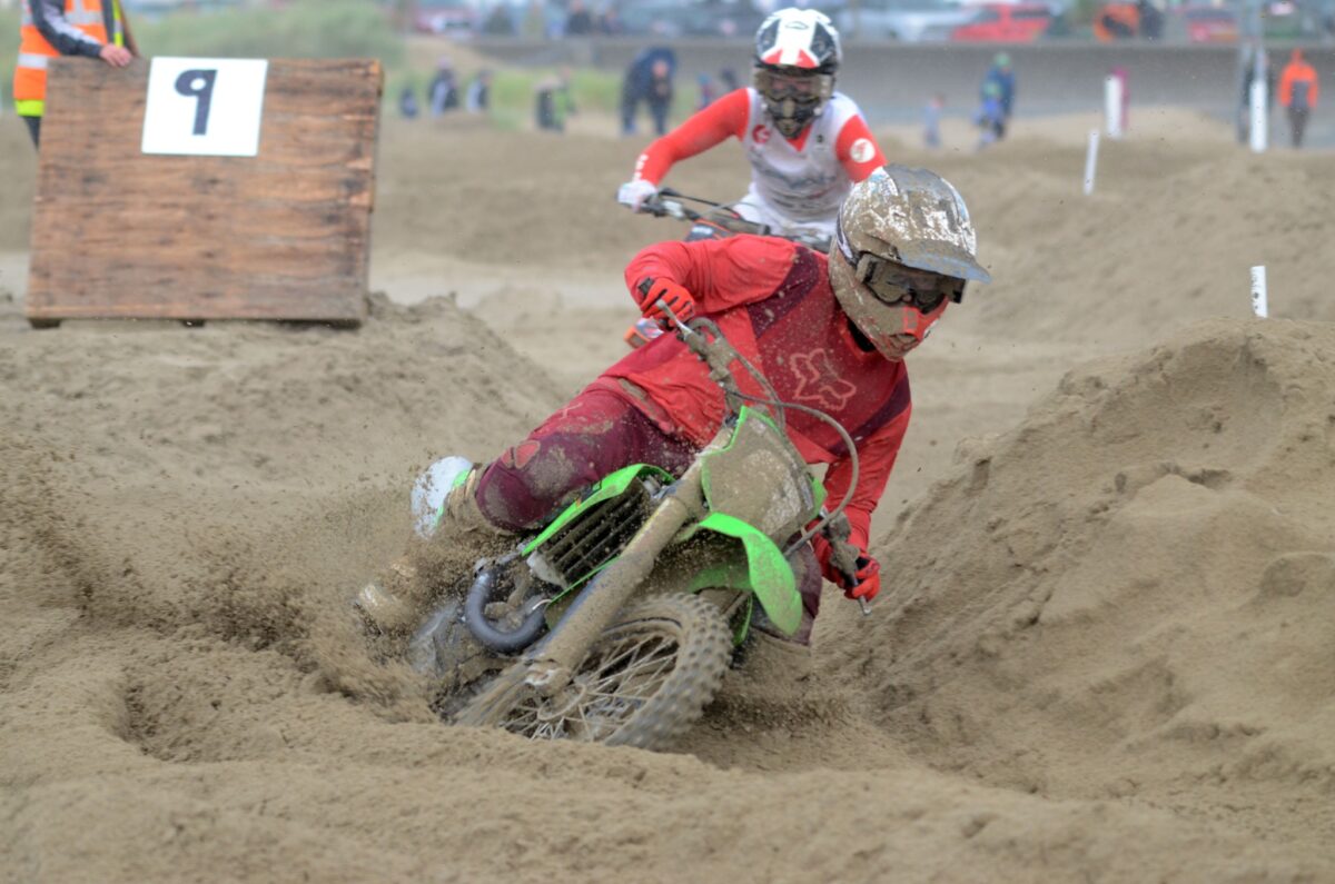 The adult open class saw an enormous entry of 68 riders line up for the opening race. A talent-packed entry set the scene for some fantastic racing. Ashley Beniston struck first, dominating the opening race, using his 450cc power to carve his way through the sand. The opening race win may have gone to Beniston, but Mitch Brightmore would be the dominant force for the remaining four races, using his enduro skills to good effect. Beniston would end his weekend in second, just 2 points off the overall, but a third in the final race ended his overall assault. Rounding off the overall podium was Stu Owen. A tough Sunday for Owen almost saw him knocked off the podium, but a strong opening day would see him hang on by just 3 points from Matt Hockernhill. Coming on strong on Sunday Jordan Wright would end his weekend with a second spot, but a DNF in his opening race pushed him down to 6th overall. Ben Wainwright was another rider showing great pace, leading the opening race briefly. A couple of poor starts and small falls meant fifth was the best he could muster.