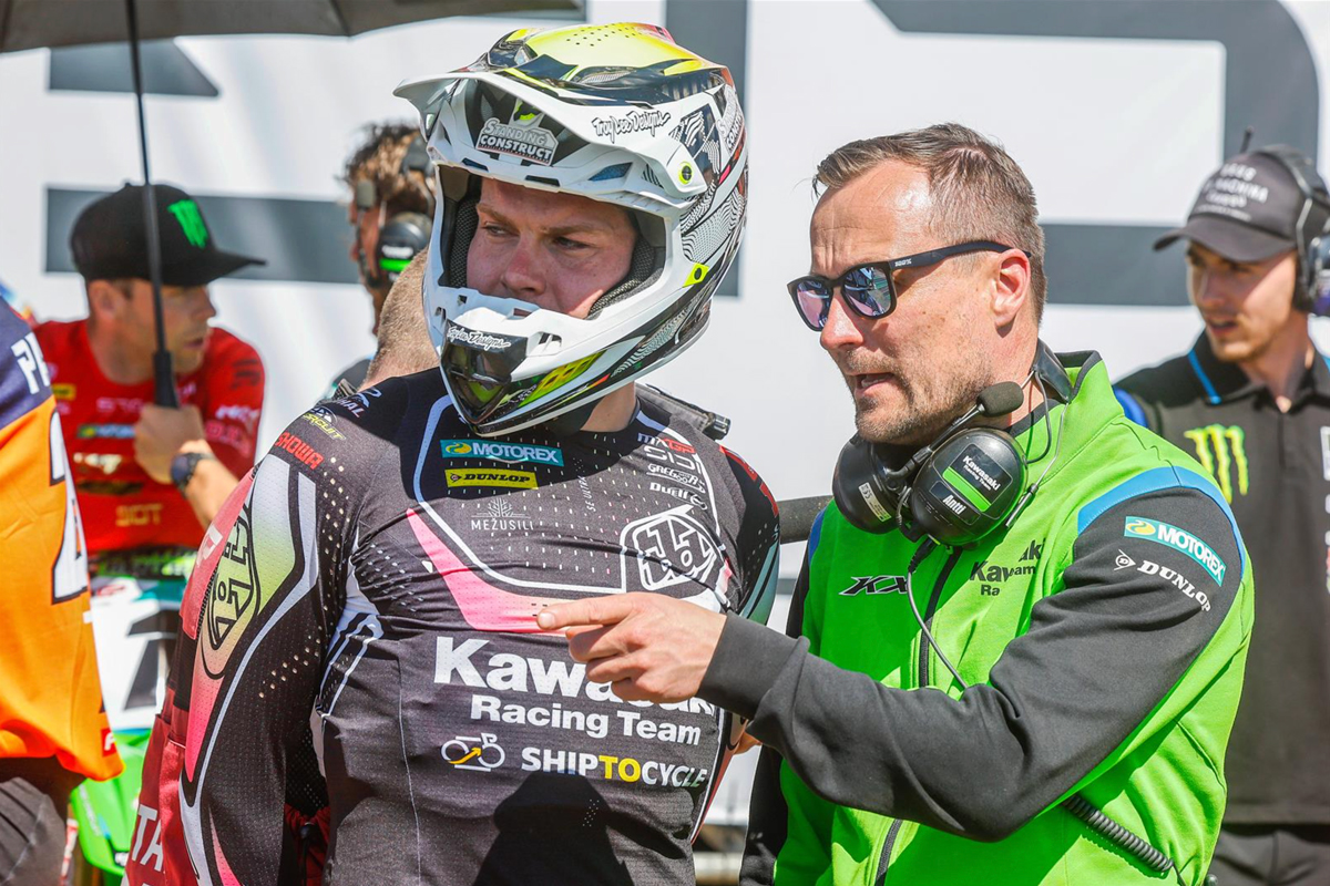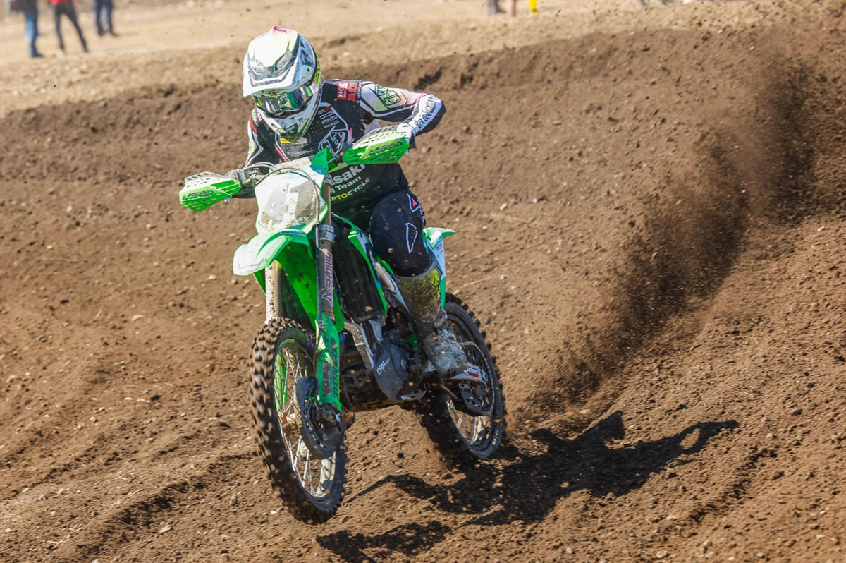 The Frenchman quickly moved into fourth from a top-six start in race one and on lap six of sixteen made an enthralling outside pass to take over third, six seconds from second. He halved the deficit to three seconds but could not quite close the gap to mount a final challenge and had to be satisfied with third at the chequered flag. A stunning start in race two saw him take the KX450-SR to a clear holeshot and he immediately opened up a commanding lead, only for the race to be red-flagged for an unsatisfactory start elsewhere on the grid.