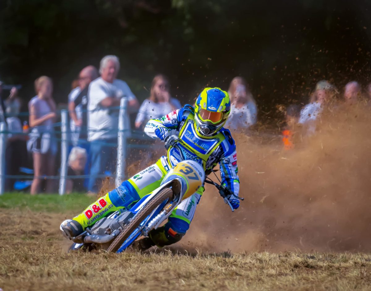 Plenty of drama and misery was suffered by some of the other pre-meeting favourites. Paul Hurry took a nasty tumble when his primary belt drive failed in his opening ride, dumping the 4x champion onto the Swingfield dirt unceremoniously. Edward Kennett was another rider having a torrid day. The former Eastbourne Eagle just couldn’t get to grips with the tough, demanding circuit and was down the scorechart by the semi finals.