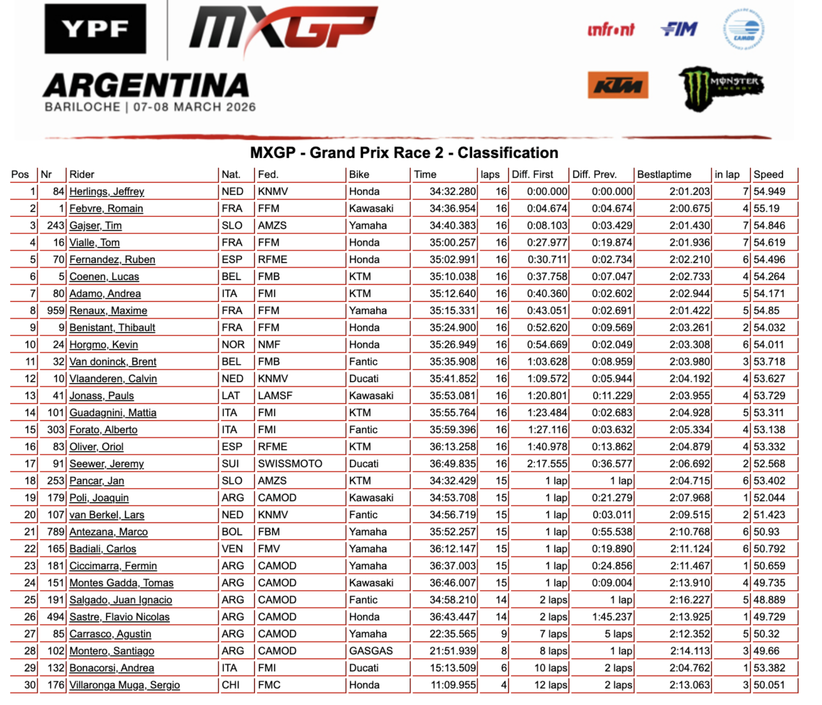 Homepage » Herlings powers to Moto 2 victory! 2026 MXGP of Argentina – MXGP Race 2 Results