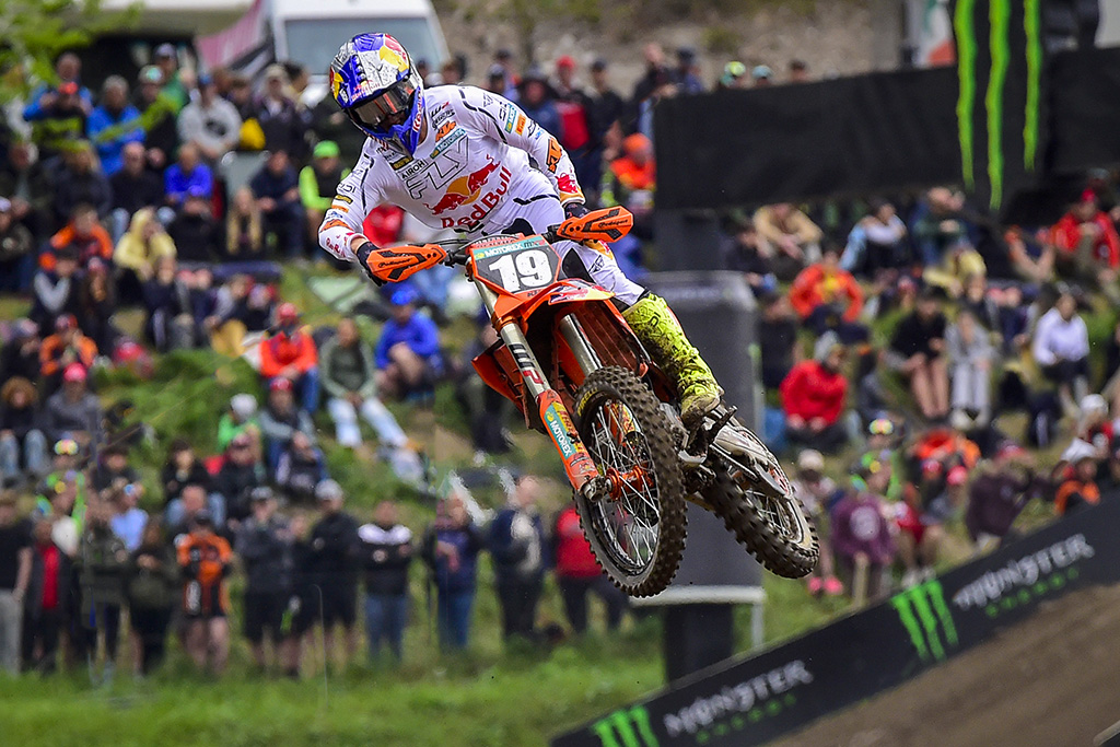 It was a happier day for the other Red Bull KTM Factory Racing twin, Sacha Coenen, who completed a perfect 1-1-1 weekend to claim the fifth Grand Prix victory of his career in fine style, with Triumph Racing Factory Team rider Guillem Farres taking second overall ahead of Kawasaki Racing Team MX2’s French star Mathis Valin.