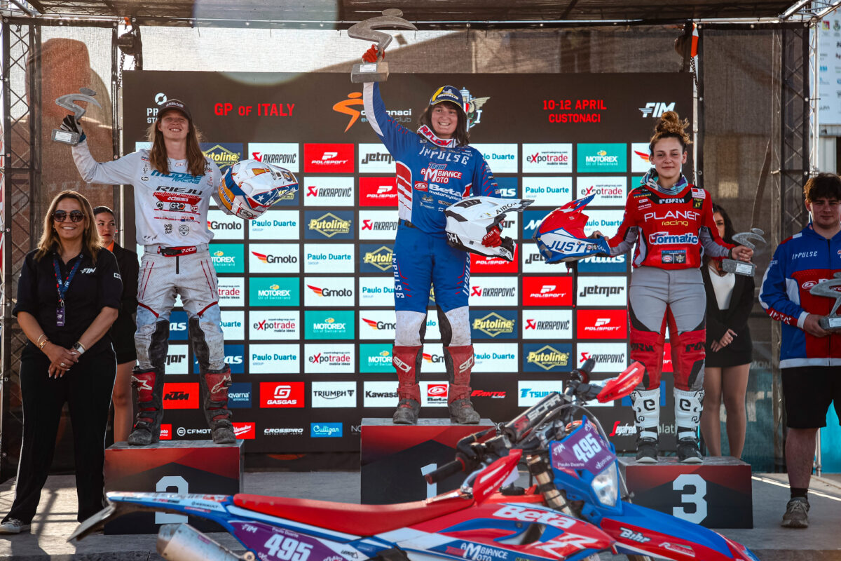 Verona rode to a 15-second margin of victory in the Enduro2 category, with Pichon second. Beta Factory Team’s Nathan Watson completed the podium in third.